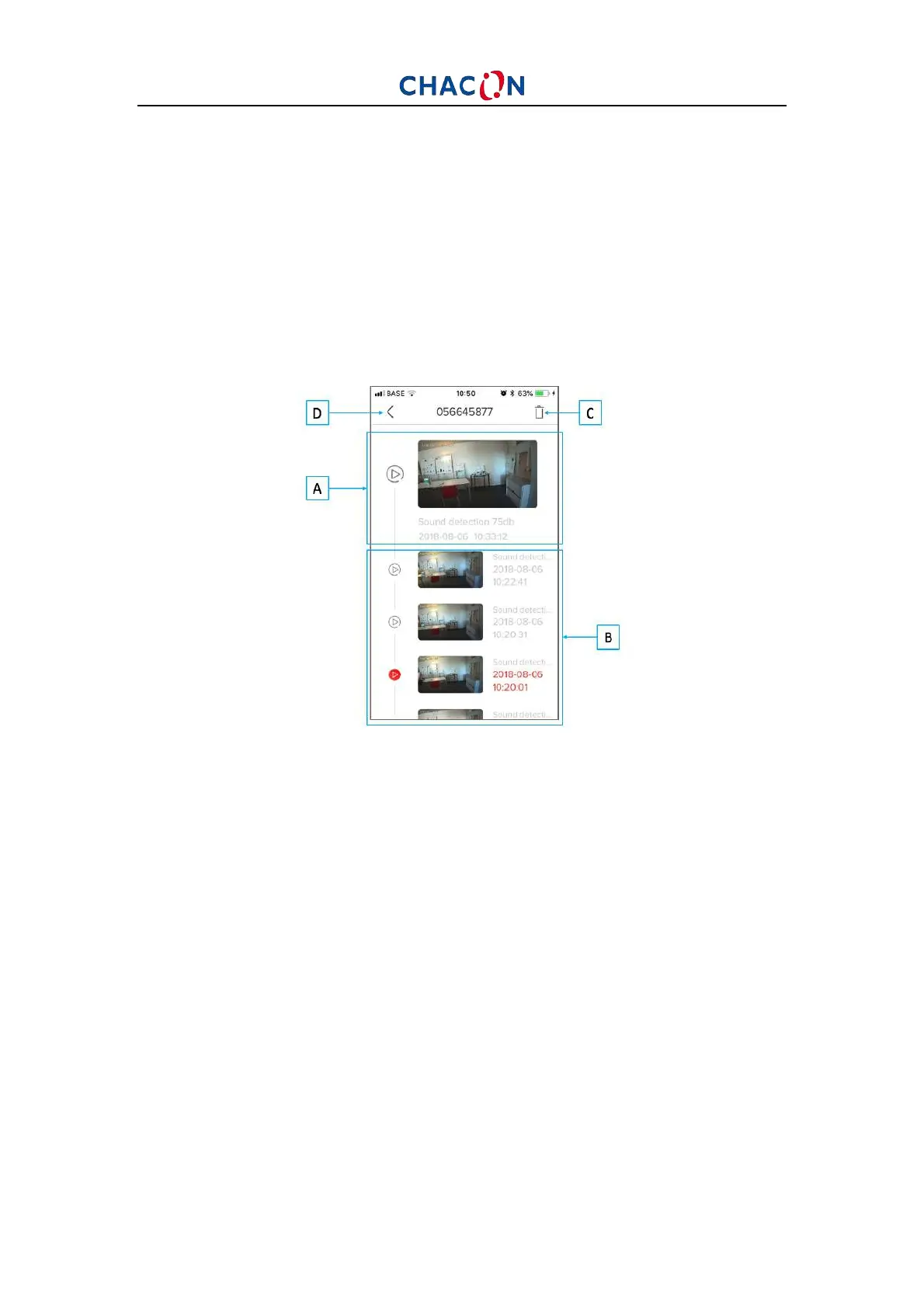 B: Previous records. Swipe your finger down to see all records. Click to the