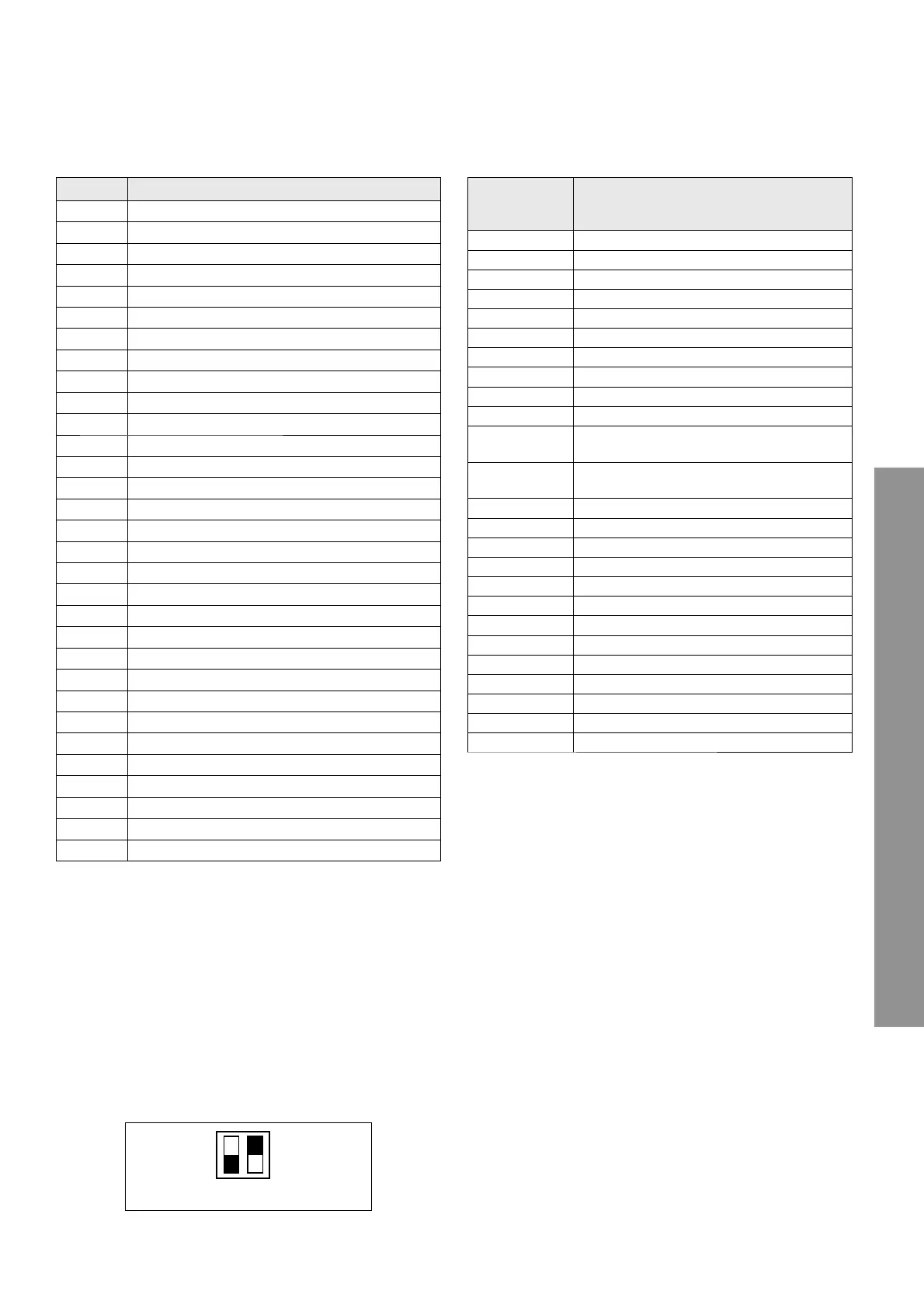 Table of error codes (PAC external unit)