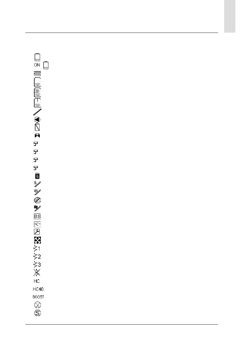 Symbolen die verschijnen bij zonnesysteem en/