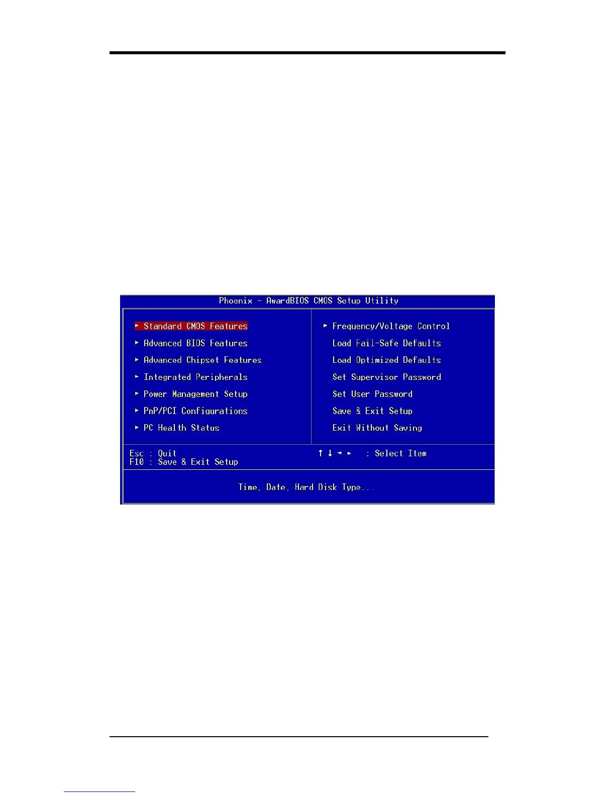 Standard CMOS Setup option from the CMOS Setup Utility menu (Figure 3-1) to