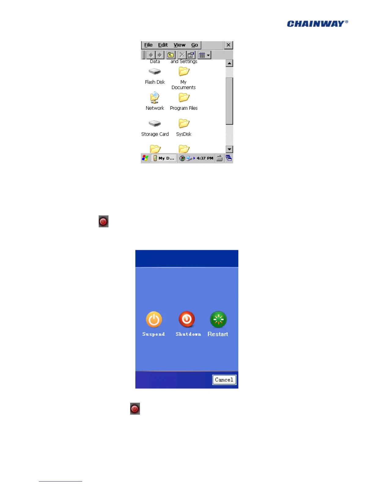 The button can be pressed to switch the status including Suspend/Shutdown/Restart.