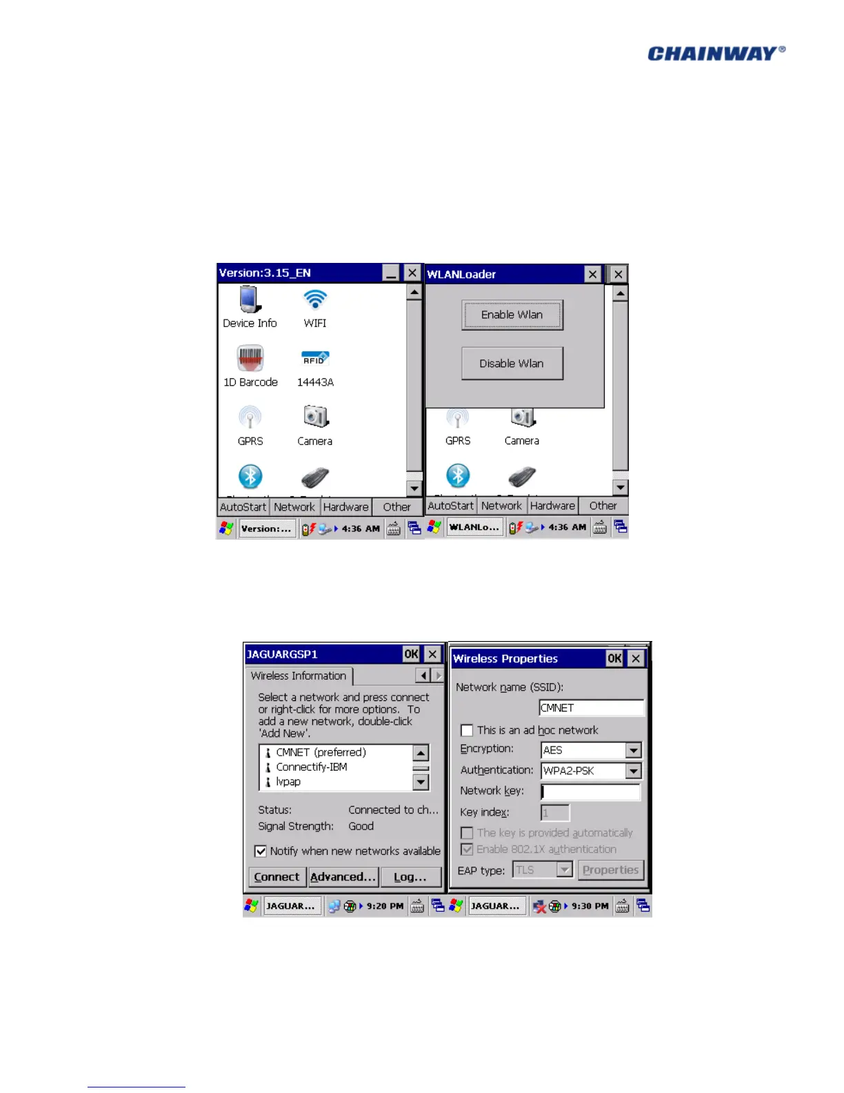 password in ‘Network Key’, and then click ‘OK’; Pic 5.1-3, Pic 5.1-4, Pic 5.1-5 and Pic