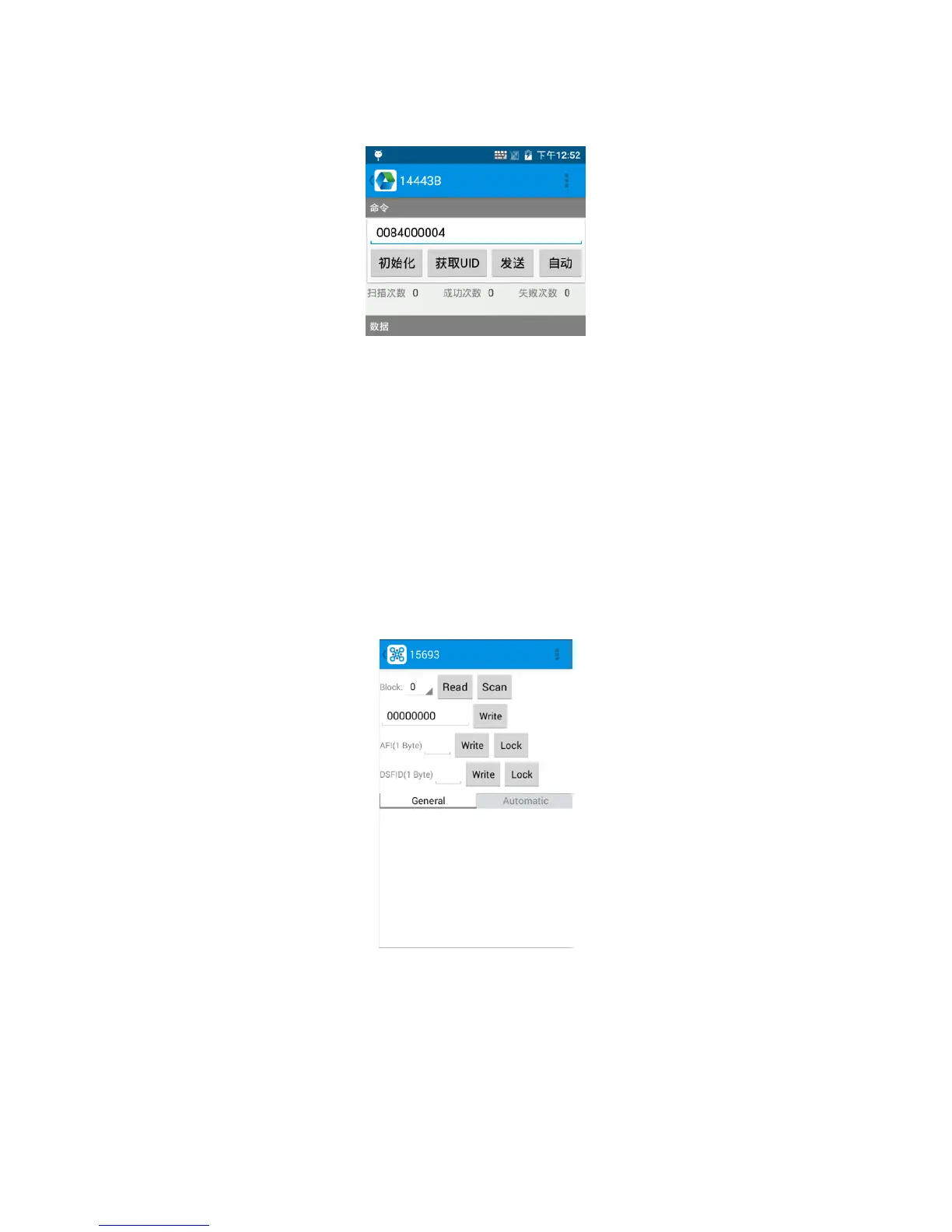 Open the “15693” demo within Appcenter, and then reading and writing information of the tag