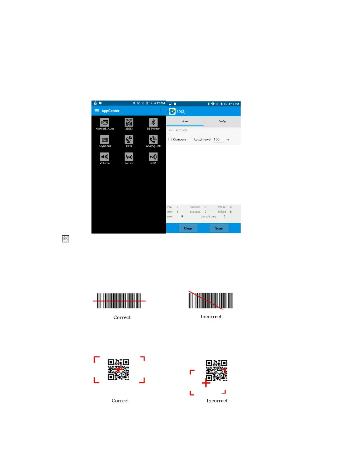 1. In App Center, to open 2D barcode scan test.