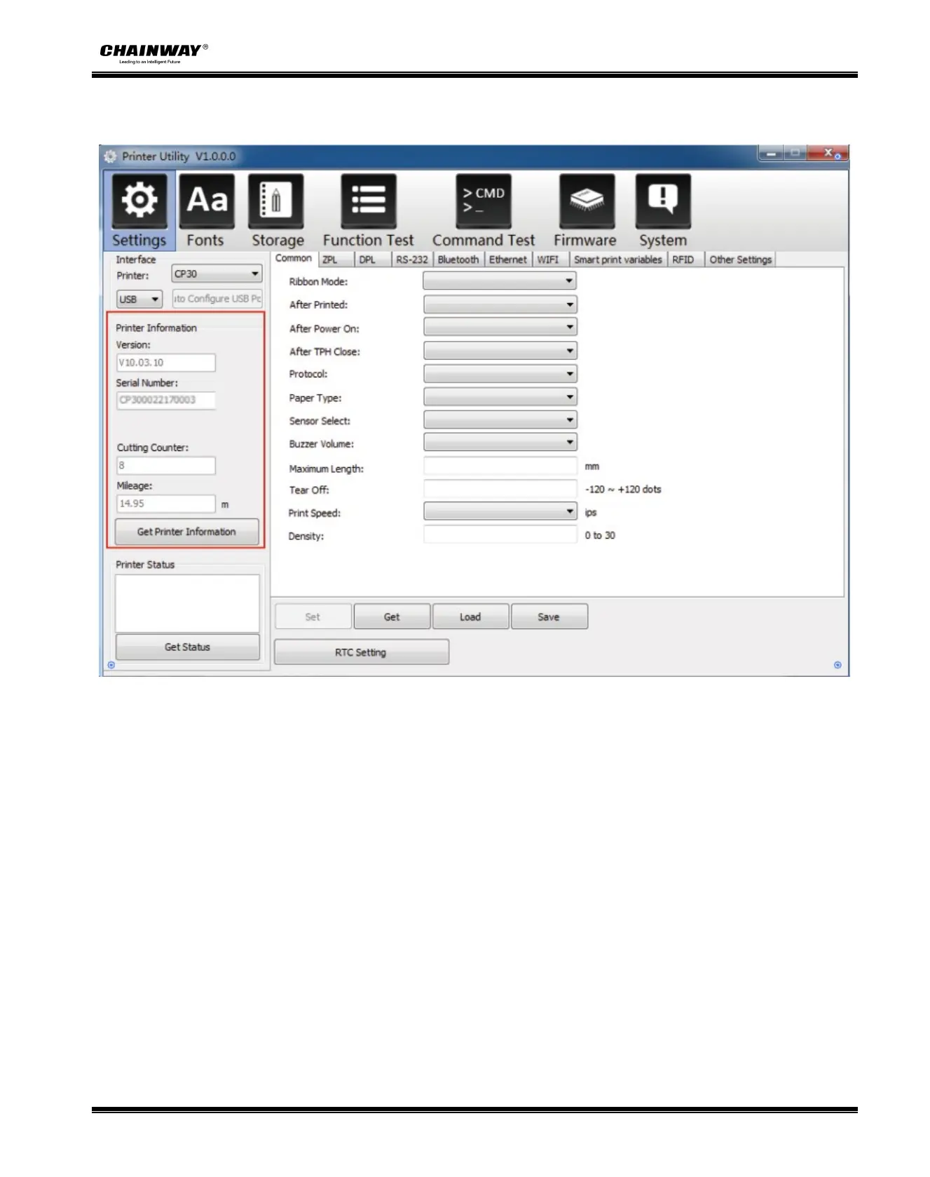(2) Click “Get Printer Information”, and printer information will show in the above.