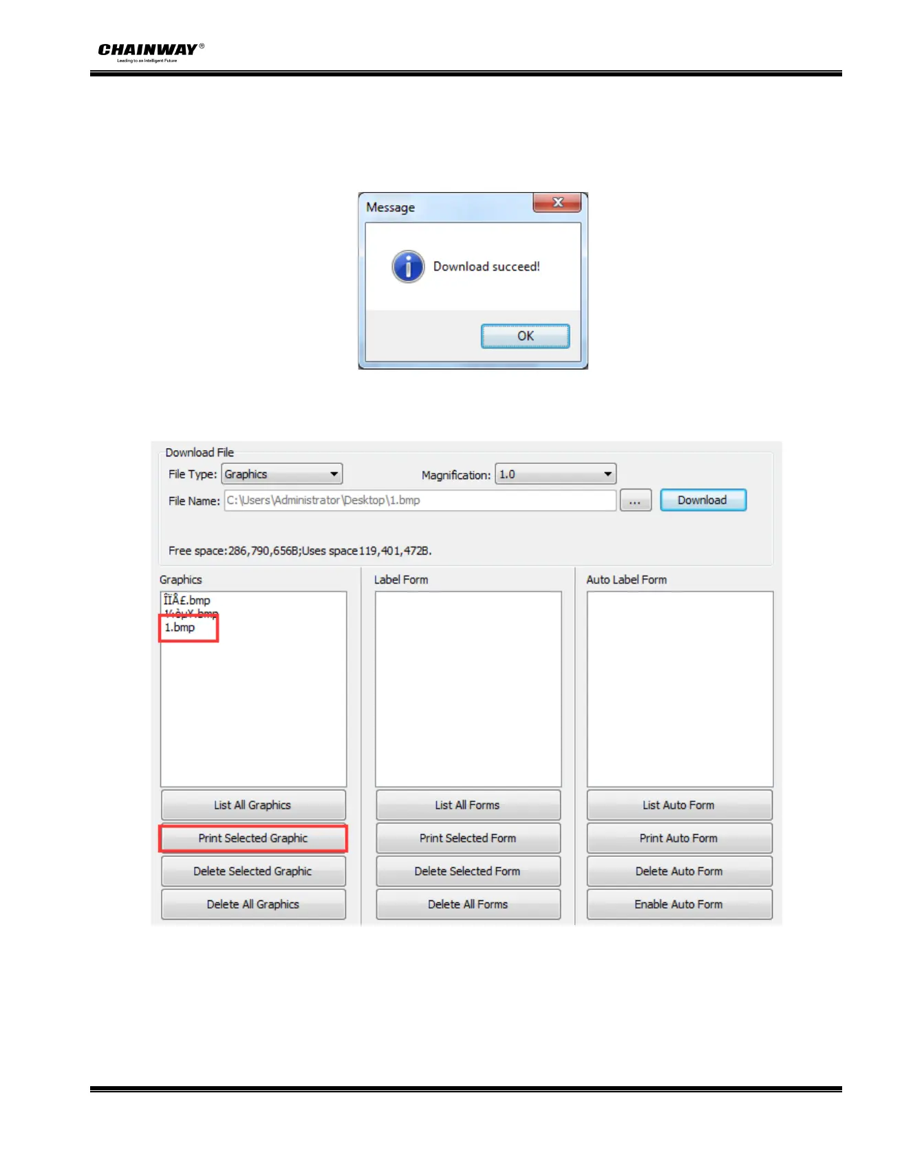 (3) Select the downloaded graphic, and then click “print selected graphic”to print the picture.