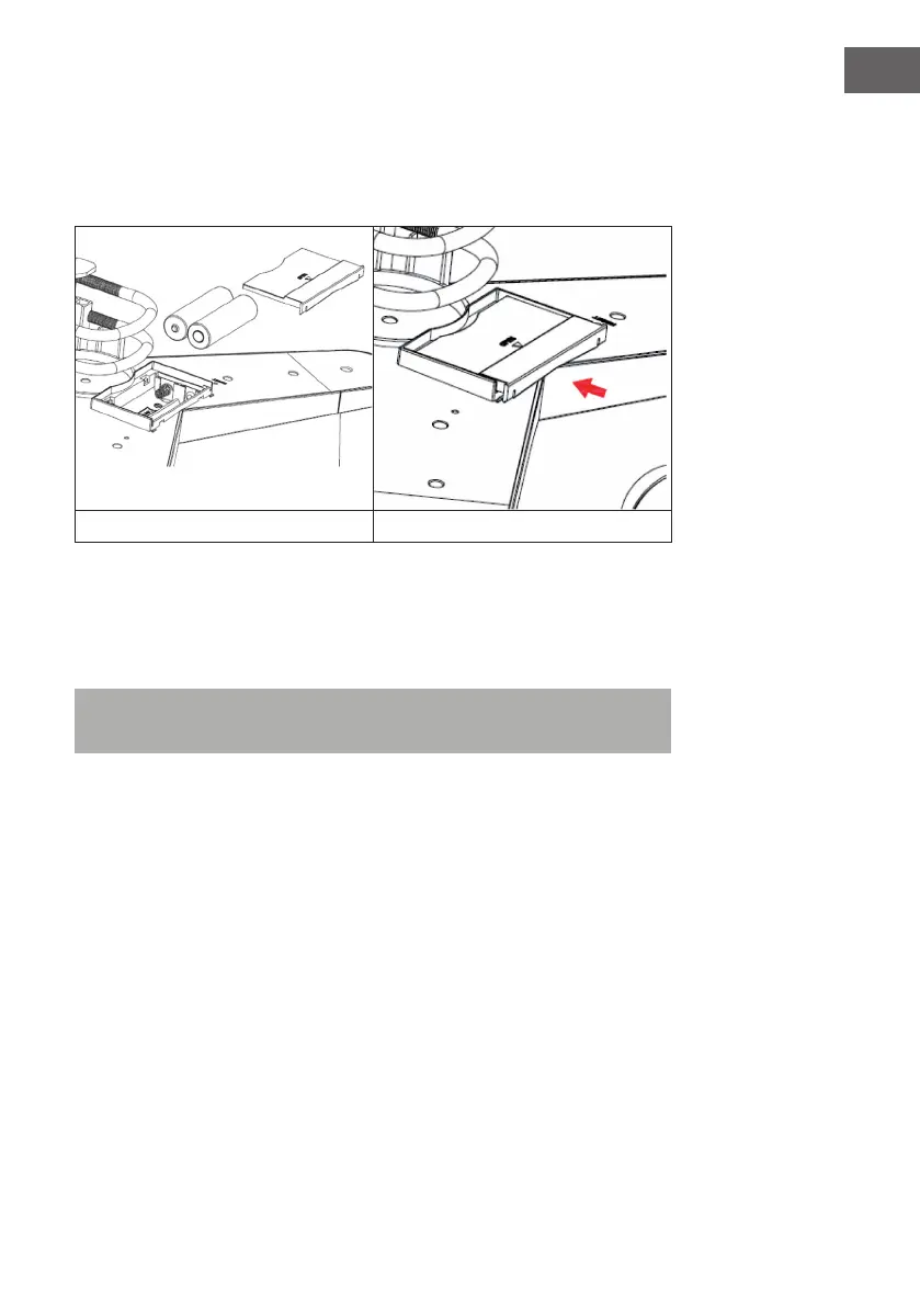 Legen Sie zwei Batterien des Typs AA in das Batteriefach ein. Die LED-Anzeige