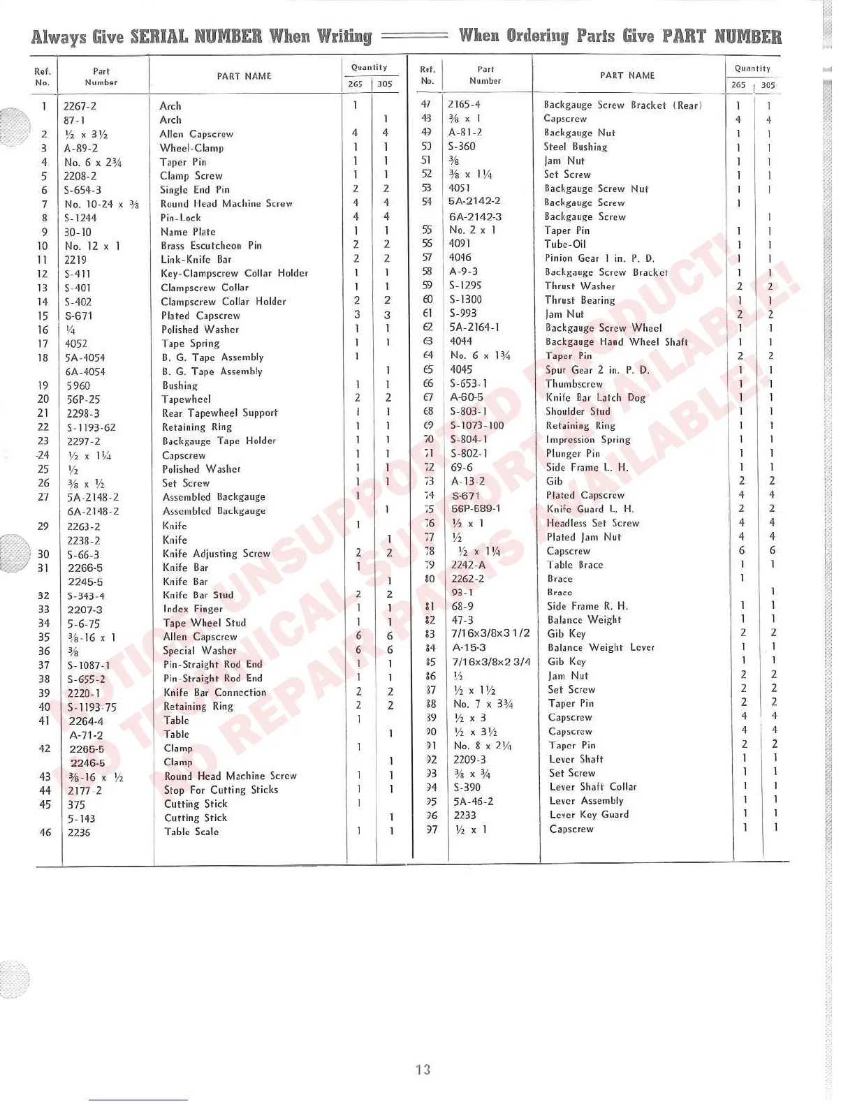 NO REPAIR PARTS AVAILABLE!
