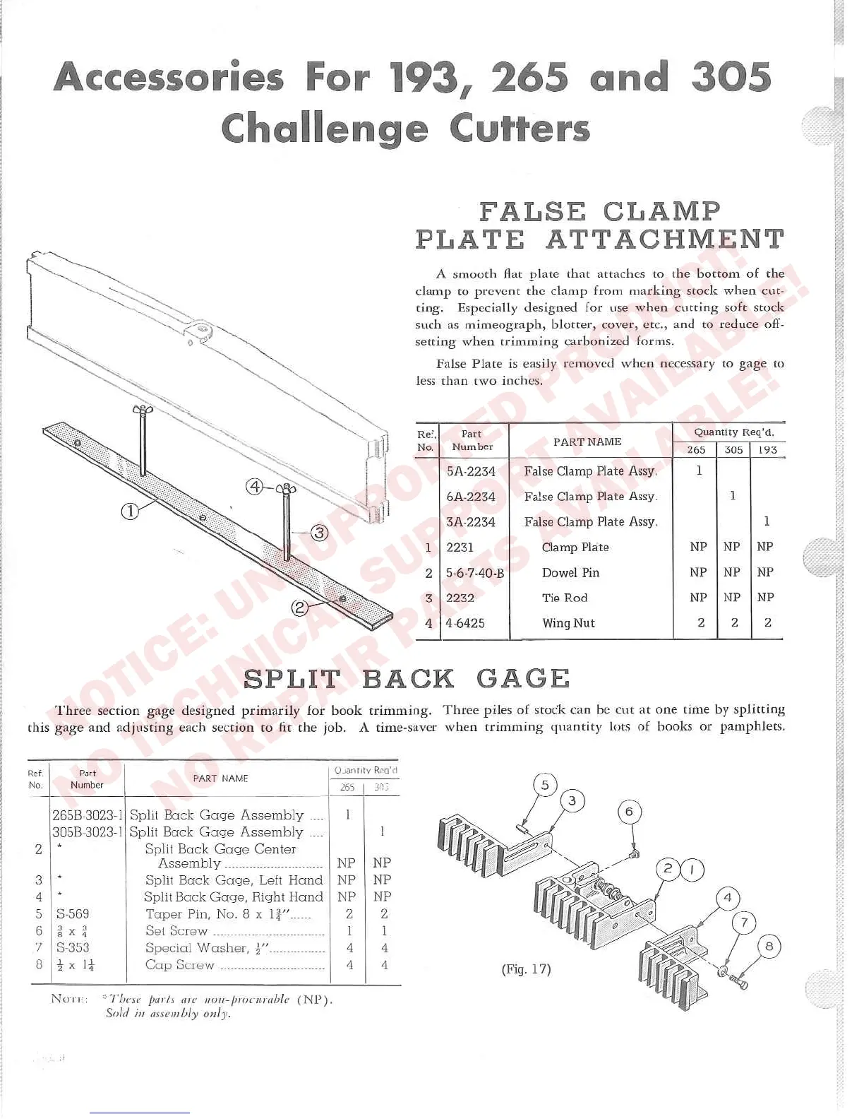 Challenge 305 - Cutter Accessories; False Clamp Plate Attachment; Split Back Gage Description