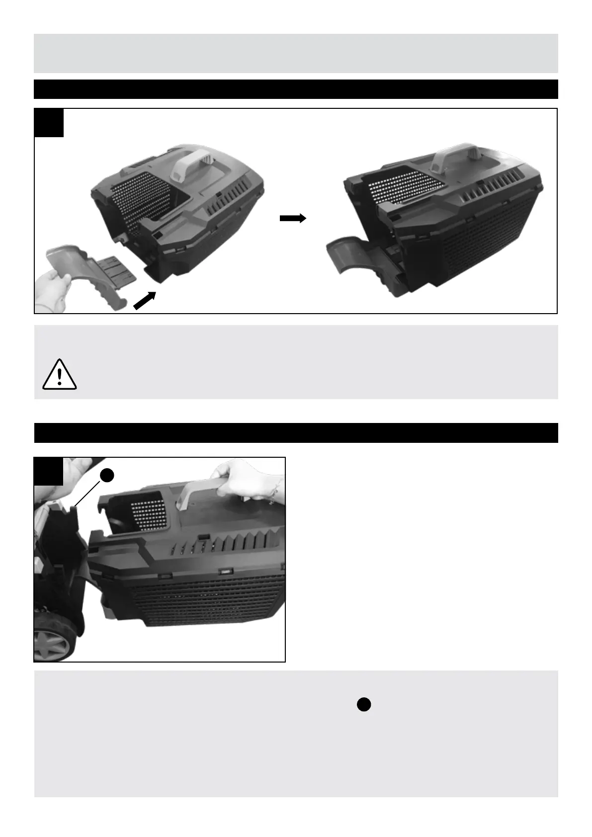 • Place the grass collection box on the mounting bracket ( ) at the back of the lawn mower.