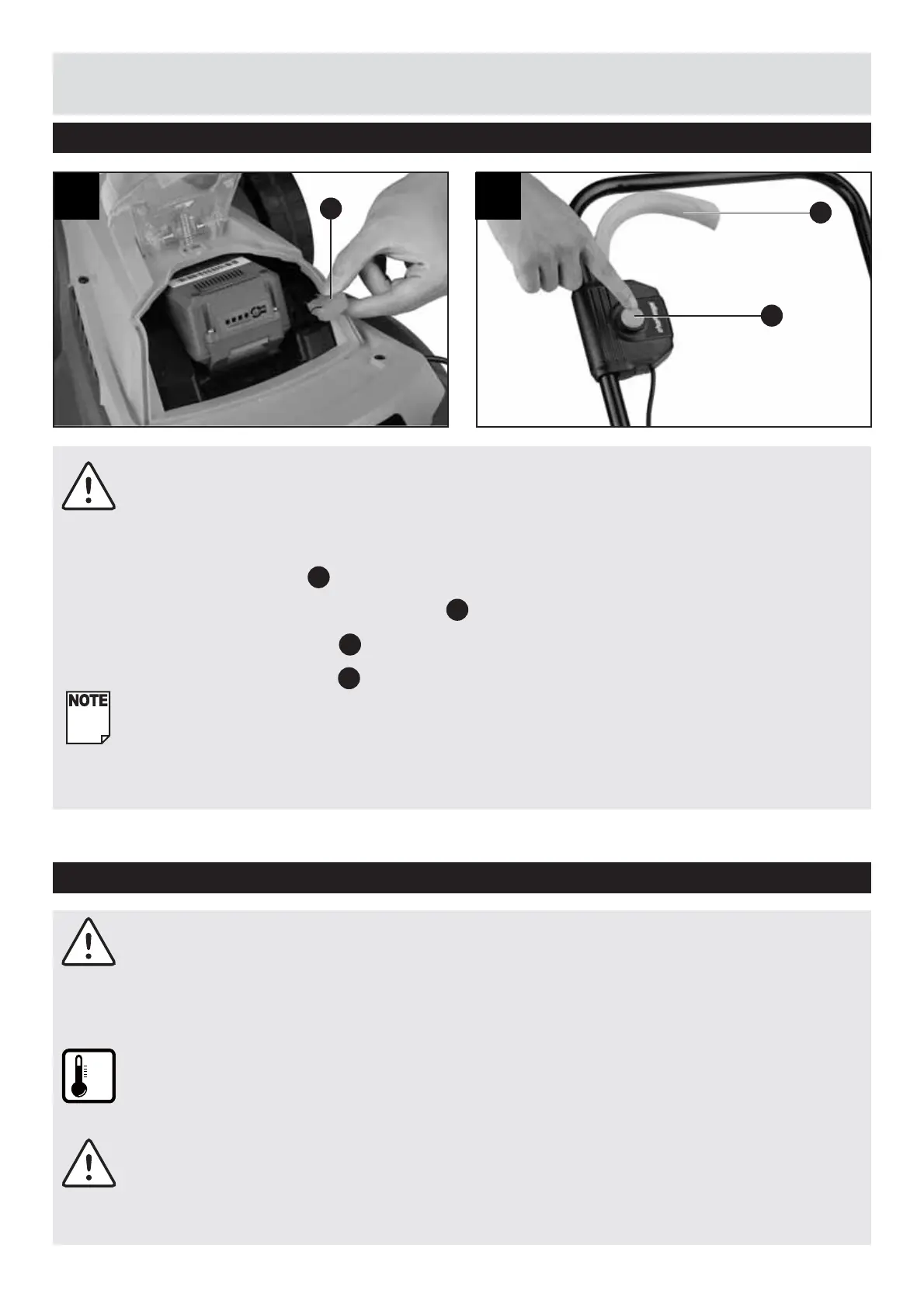 heat sources. Do not leave the battery in the mower in direct sunlight over long periods.