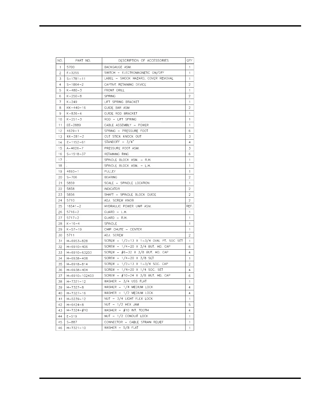Main Assembly Front View, Parts list