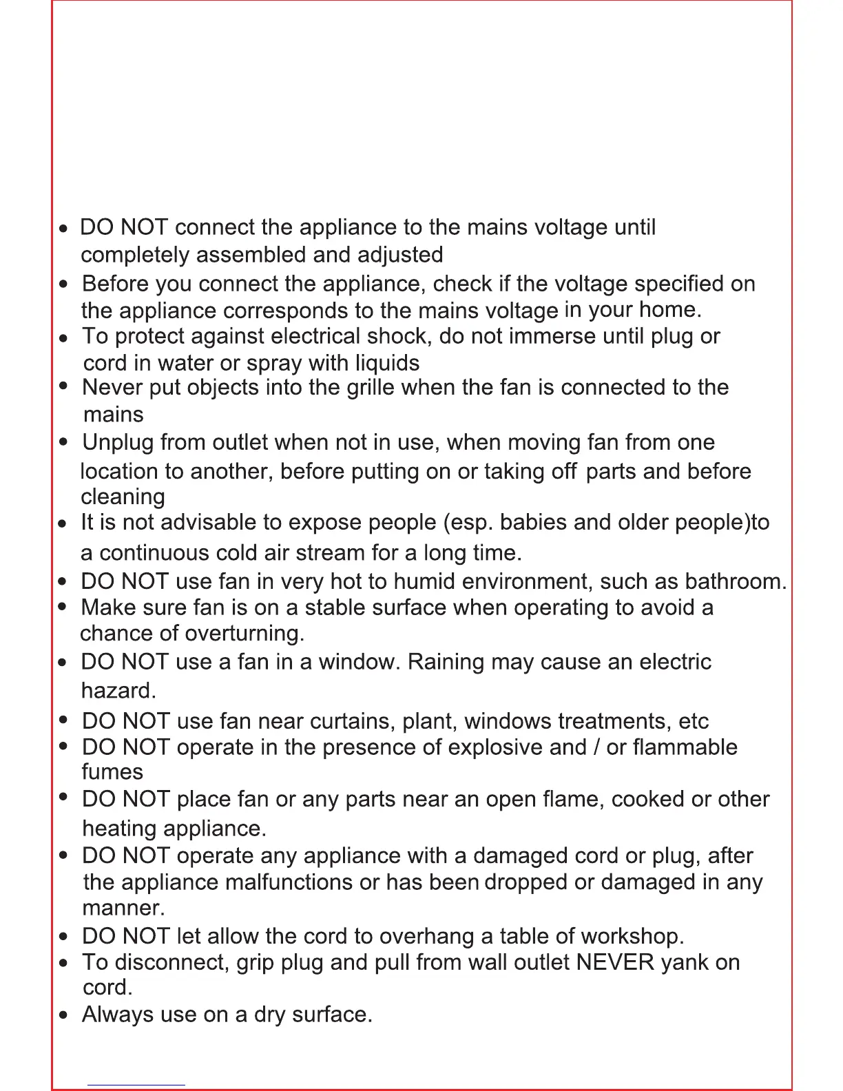 THOROUGHLY with a dry cloth, checking that the fan is completely dry before operating the fan.