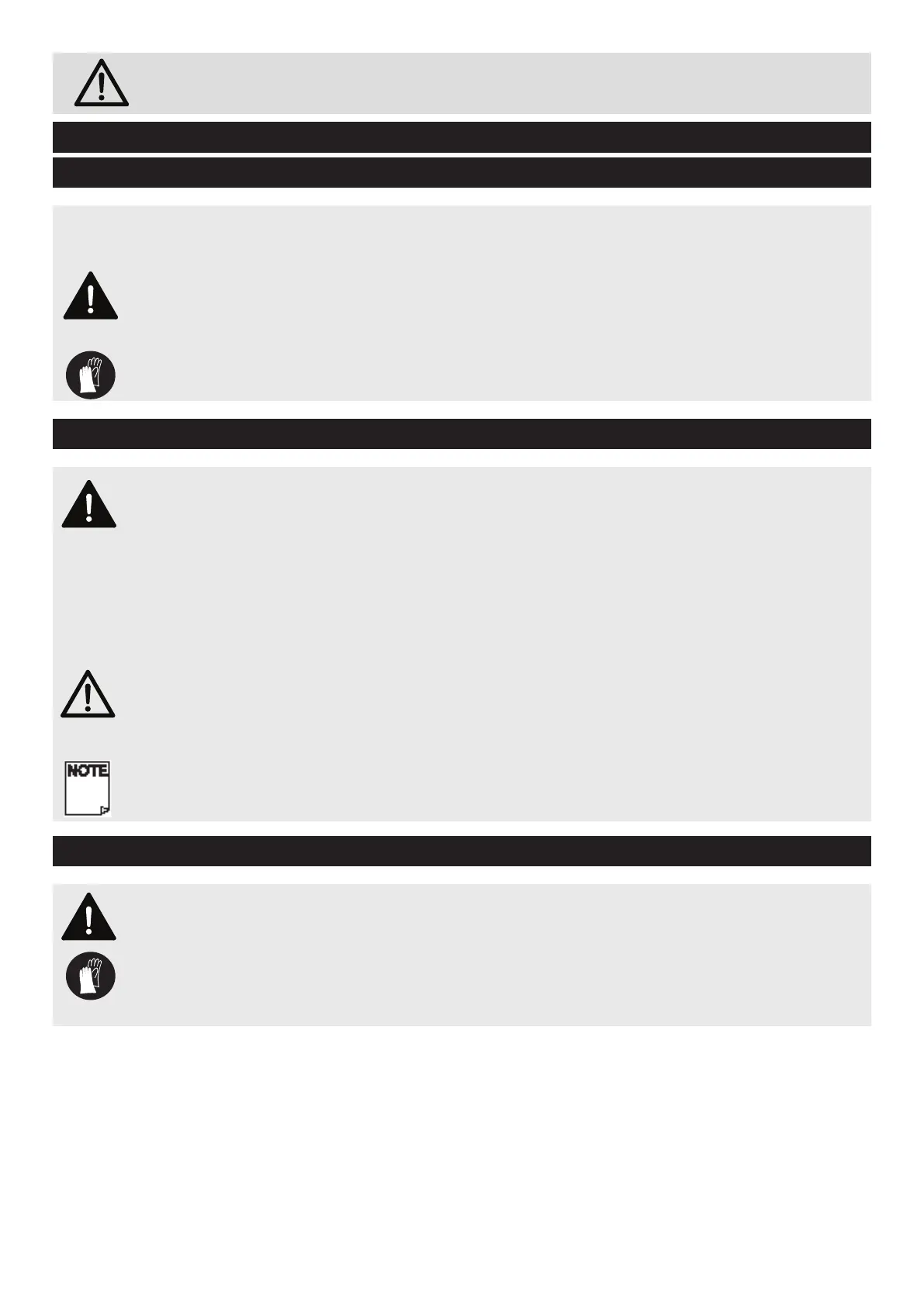 The following warning symbols appear throughout this assembly manual and indicate the appropriate
