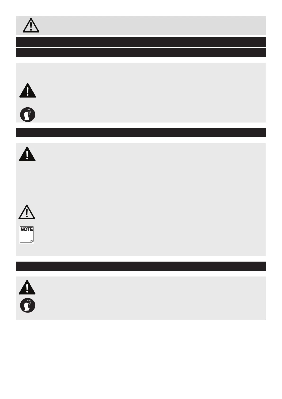 The following warning symbols appear throughout this assembly manual and indicate the appropriate