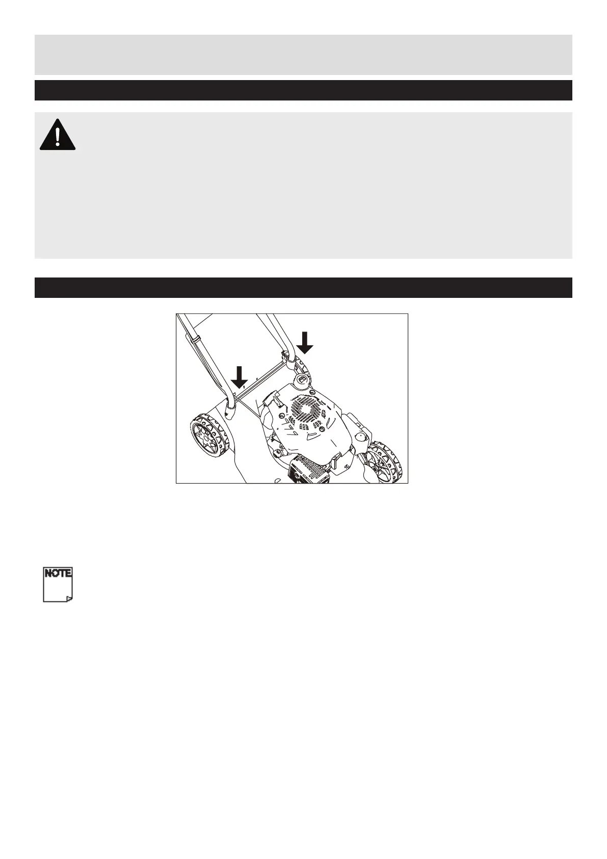 sufcient space to put the lawn mower down. Keep your feet apart so that you have a stable