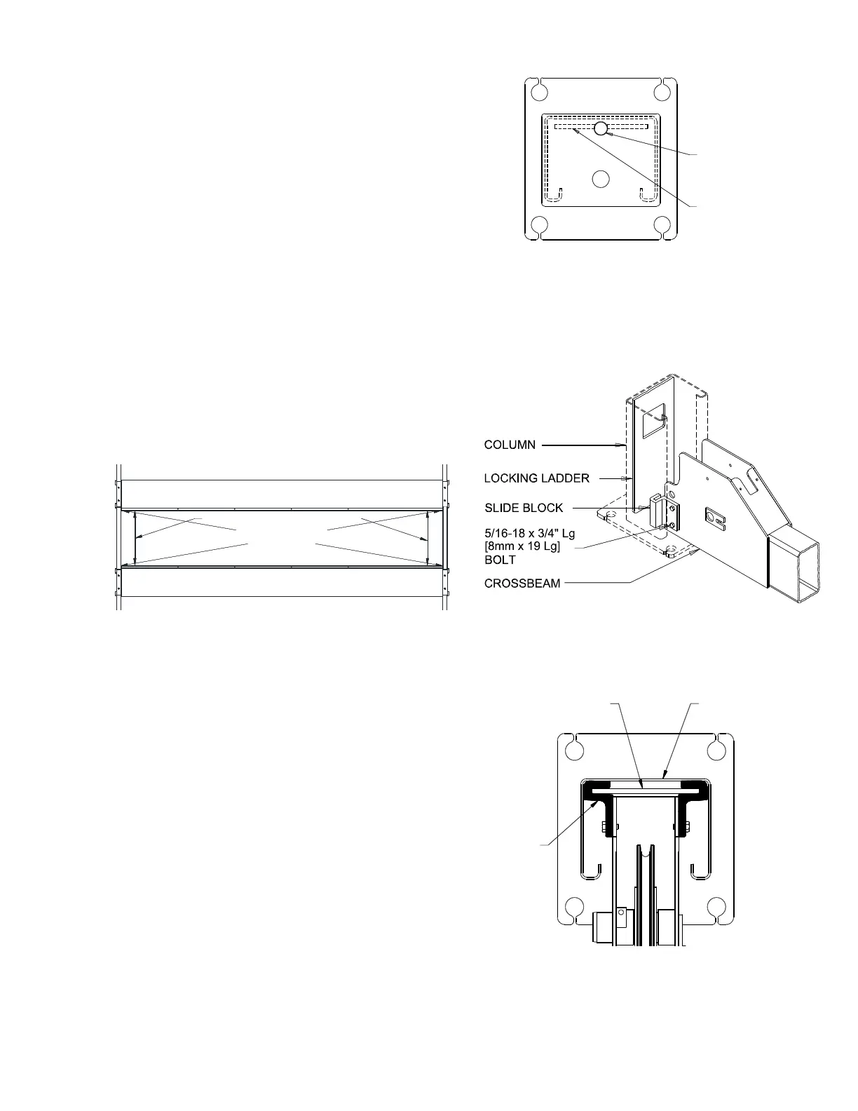 15) Center cross beam bolts with slots in runway