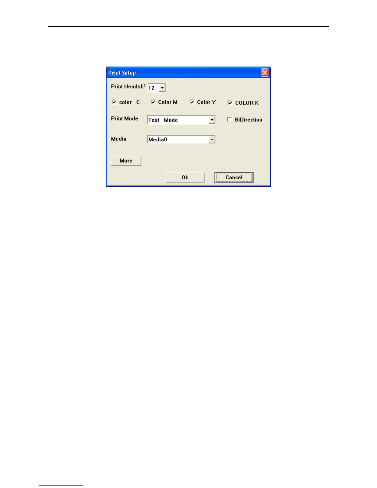 This function is to set the printing parameter, print mode, uni-direction, BID and the color of ink.