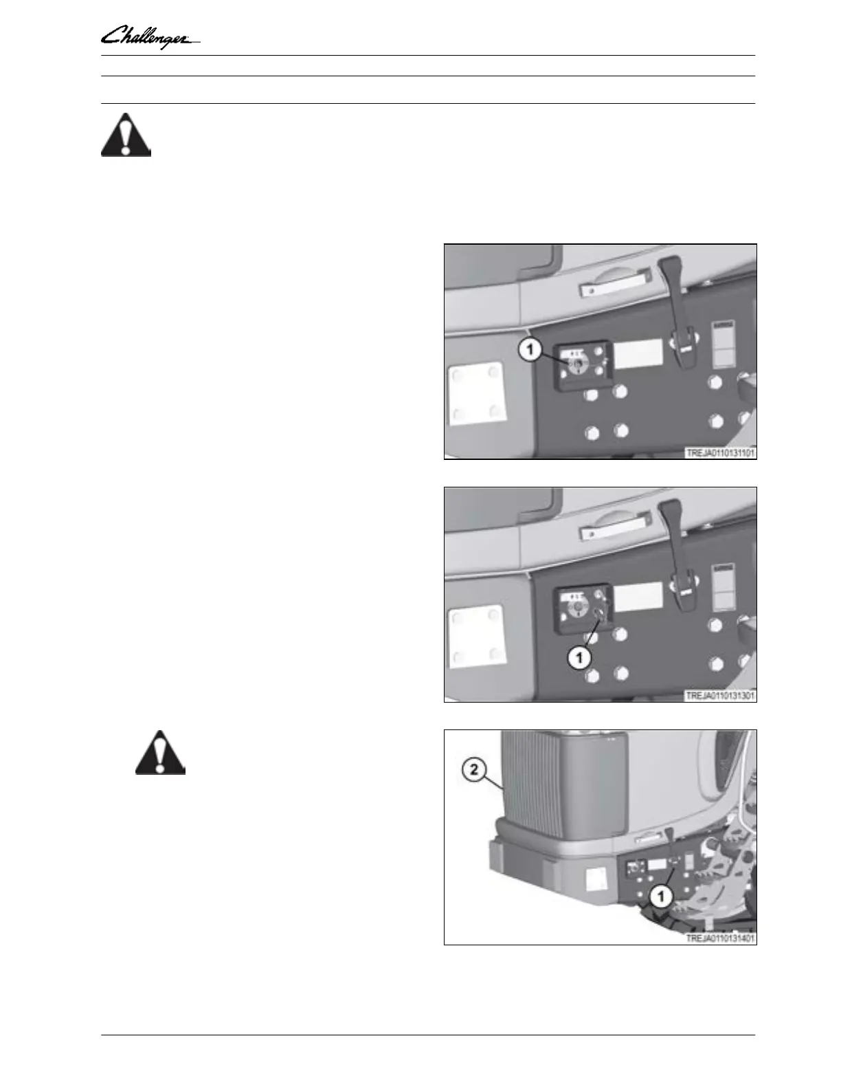 Park the machine on a solid level surface. Stop the engine, apply the parking brake, and take the key