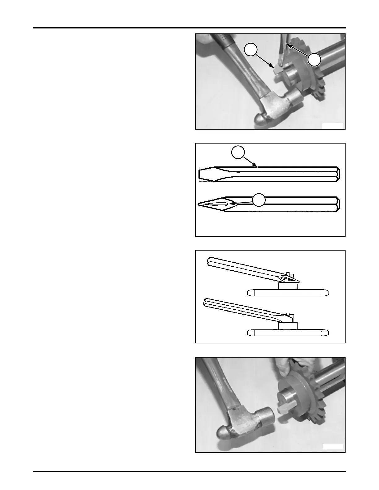 the hub. Drive against the chisel with a hammer. Use the