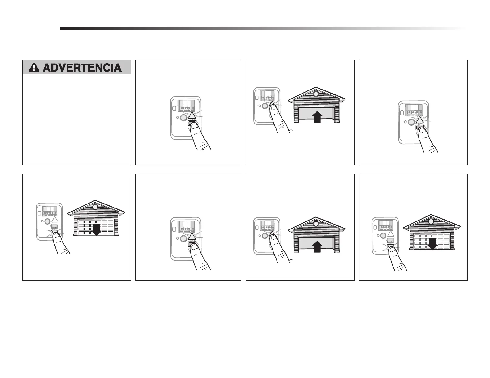 abajo utilizando el control remoto o los botones ARRIBA y ABAJO. La programación ha fi nalizado. Si no puede operar la puerta hacia arriba o hacia abajo, repita los pasos de Programación de la carrera.