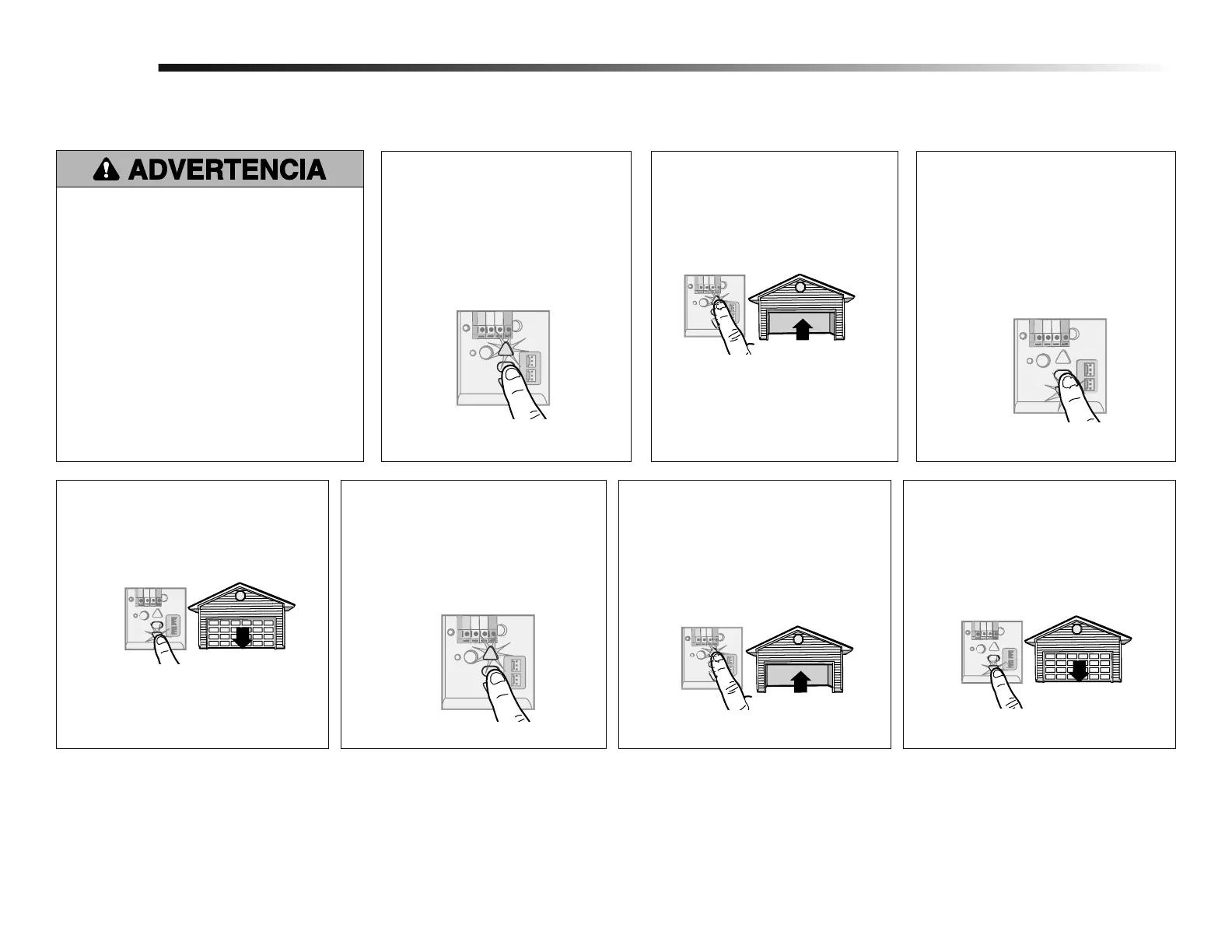 inicie un ciclo completo hacia arriba y hacia abajo utilizando el control remoto o los botones ARRIBA y ABAJO. La programación ha fi nalizado. Si no puede operar la puerta hacia arriba o hacia abajo,
