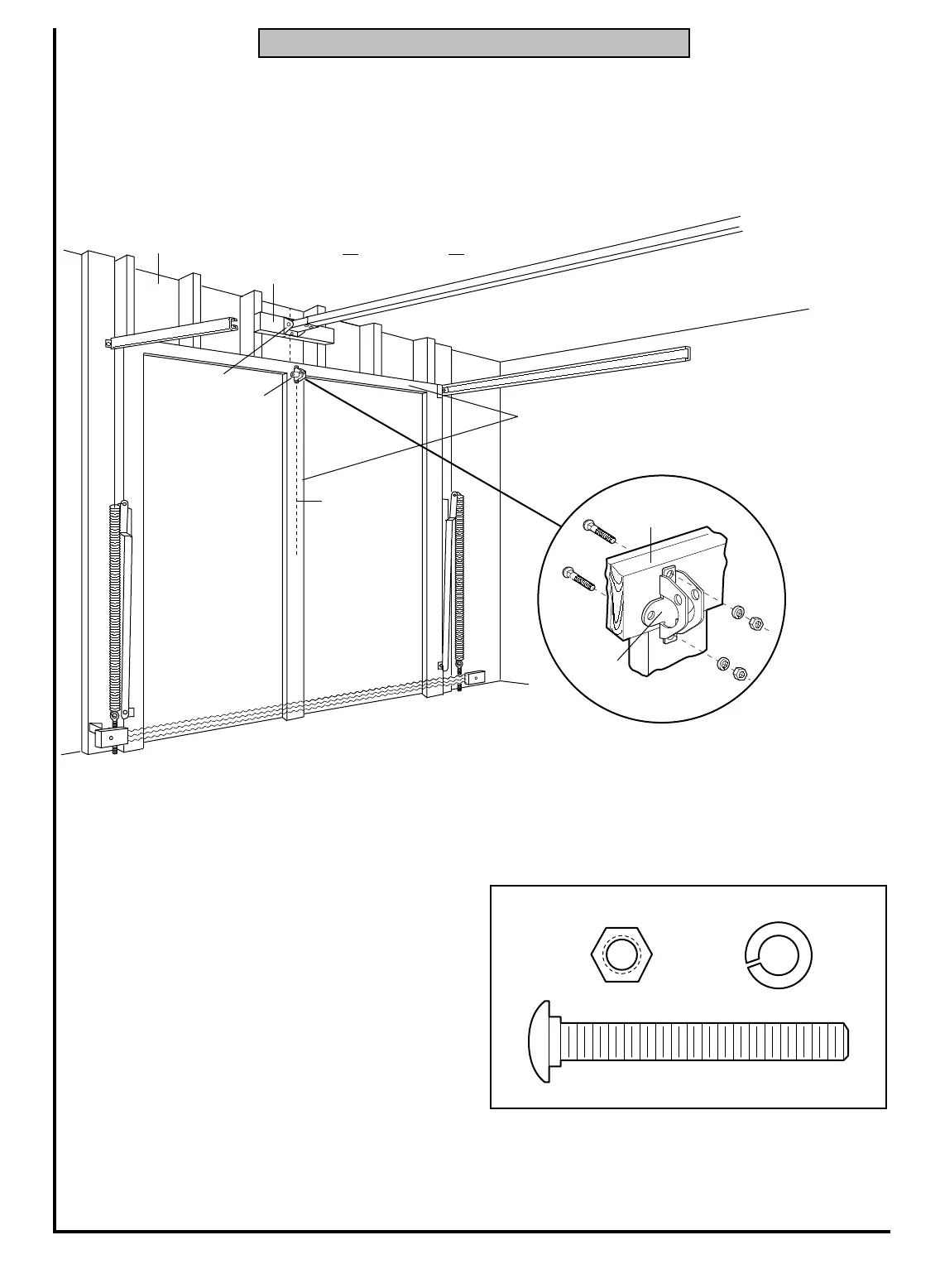 • Drill 5/16" pilot holes and fasten the door bracket