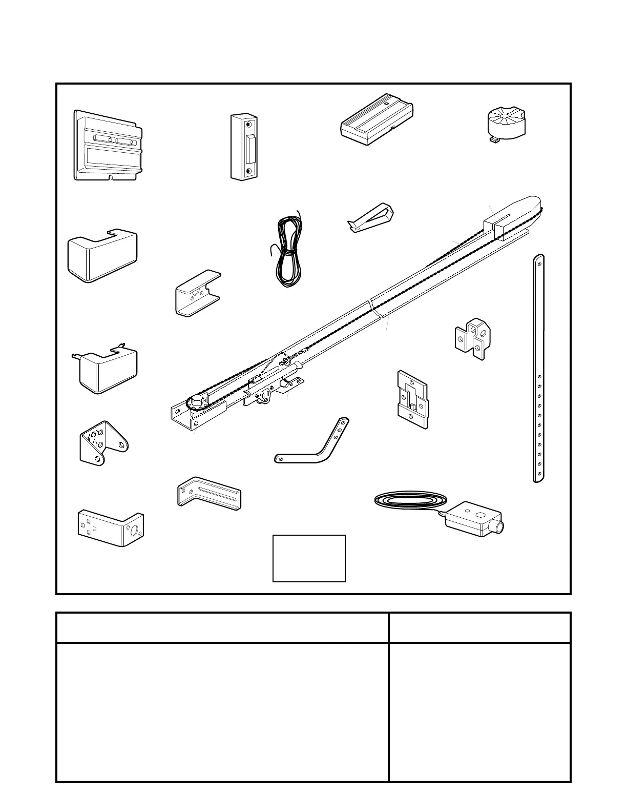 Your garage door opener is packaged in two cartons which contain all parts illustrated below. If anything is
