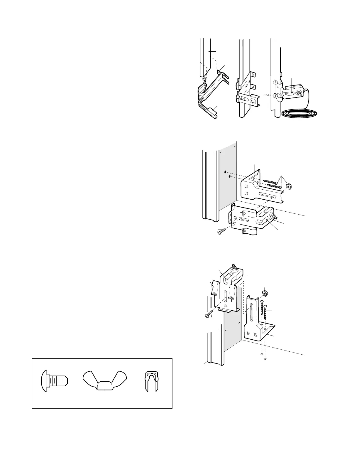 • Attach brackets to wall with lag screws