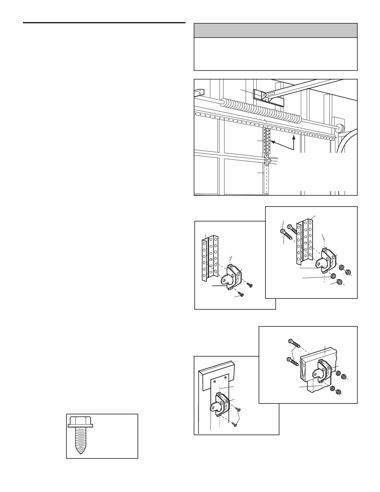 en la puerta y fije la ménsula con tornillos de 5/16x2 de pulg.,