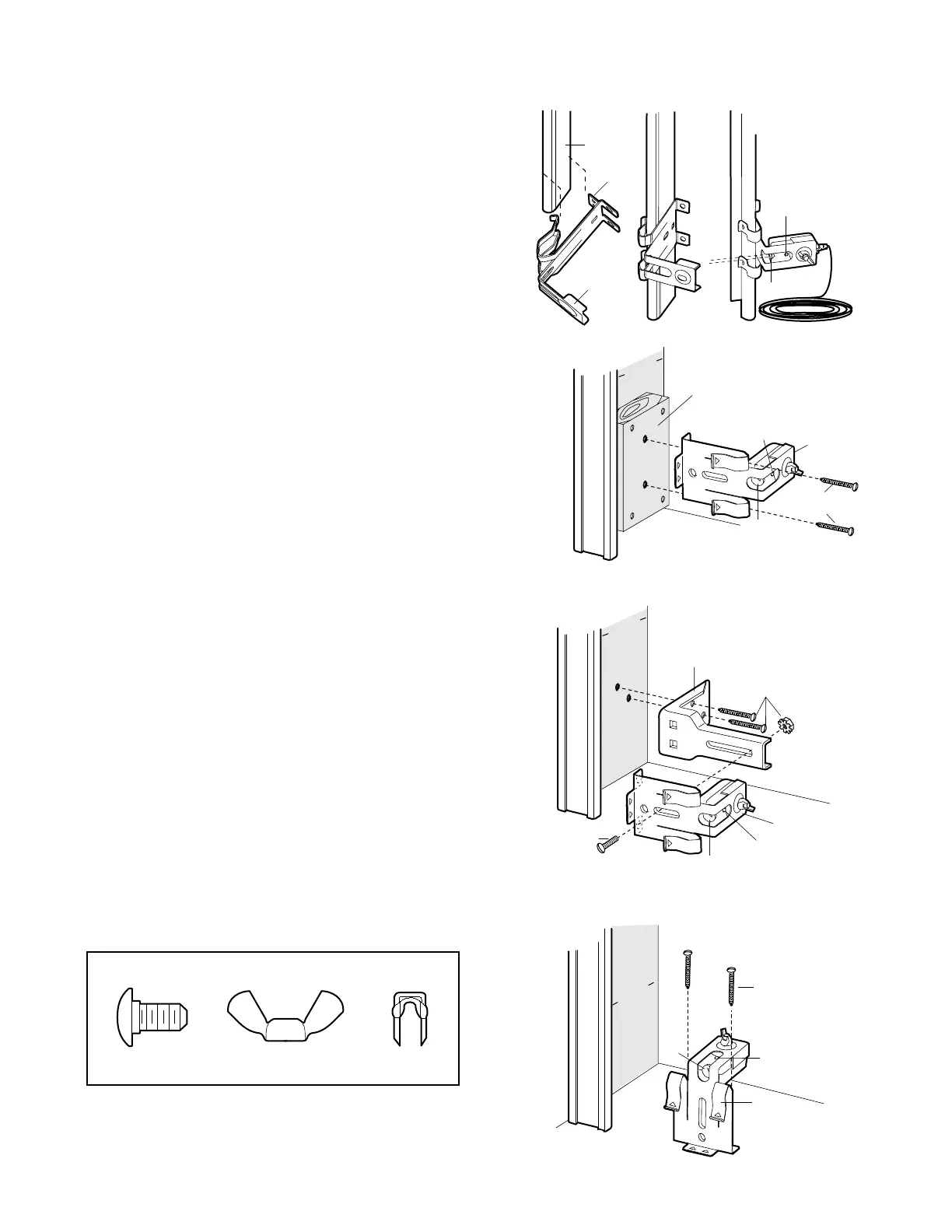 • Attach brackets to wall with lag screws