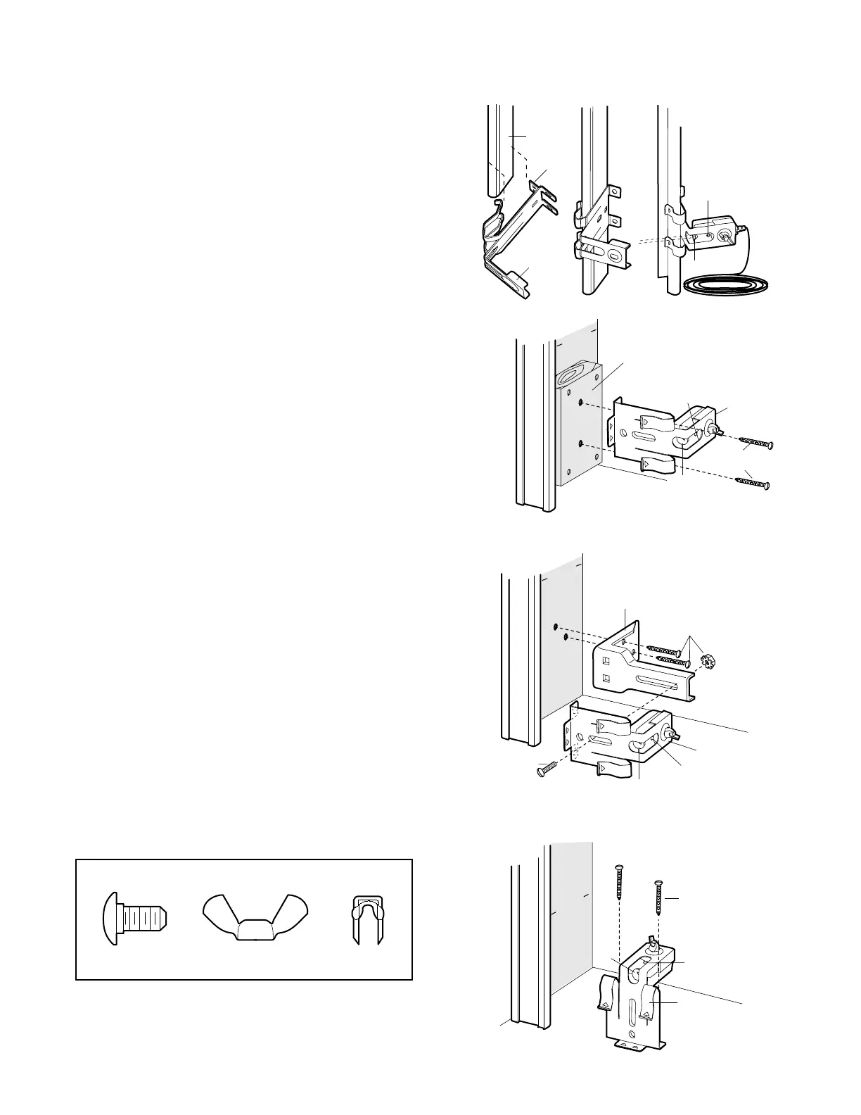 • Attach brackets to wall with lag screws