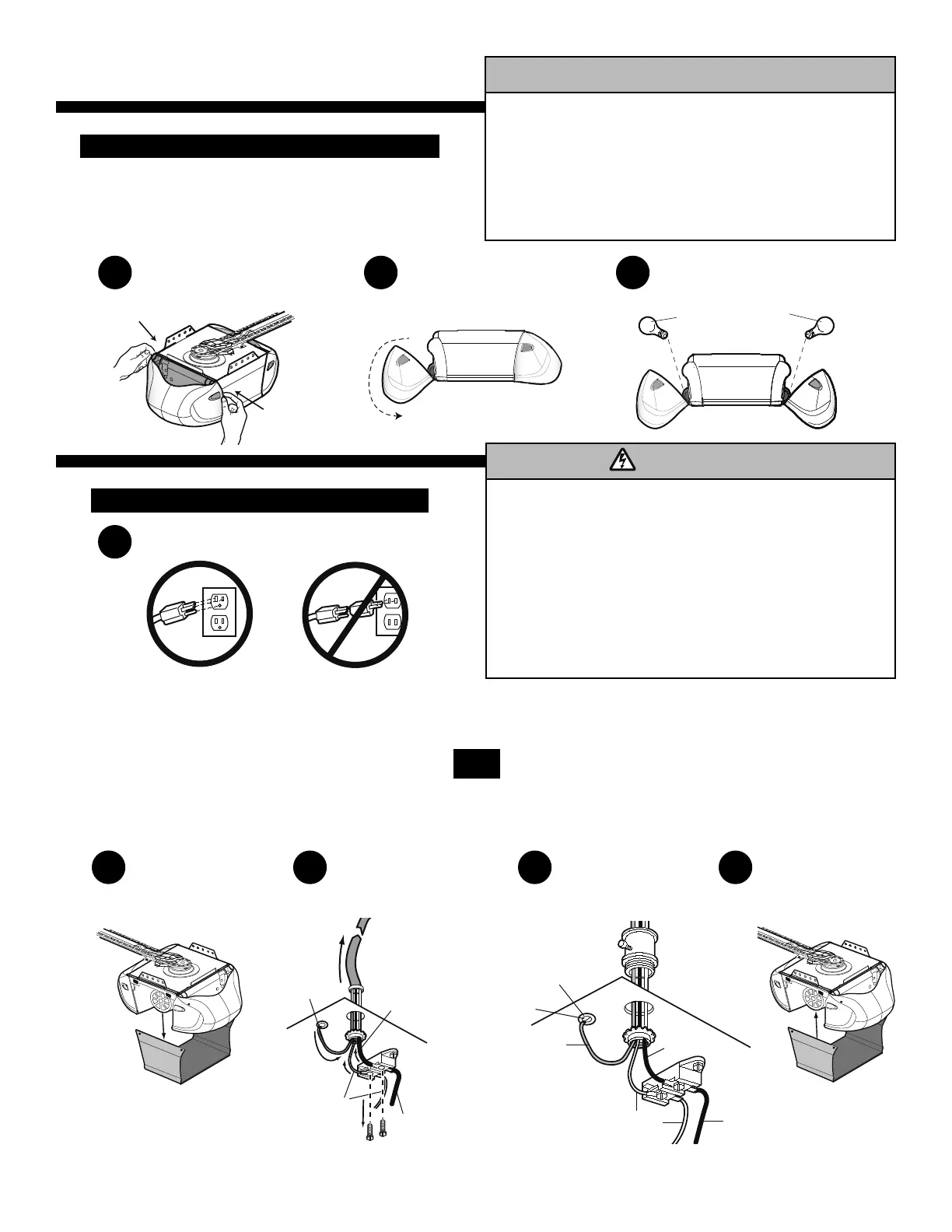 • Be sure power is NOT connected to the opener, and