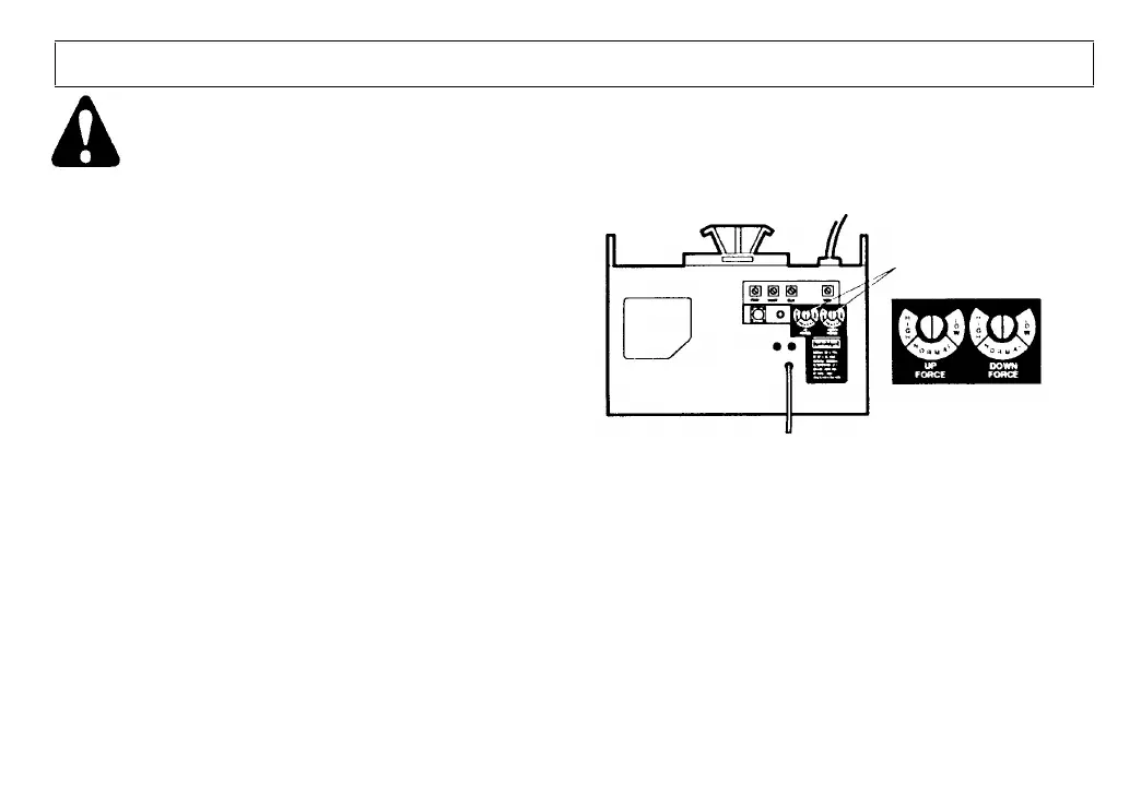 door is hard to hold or doesn't reverse, decrease DOWN (CLOSE)