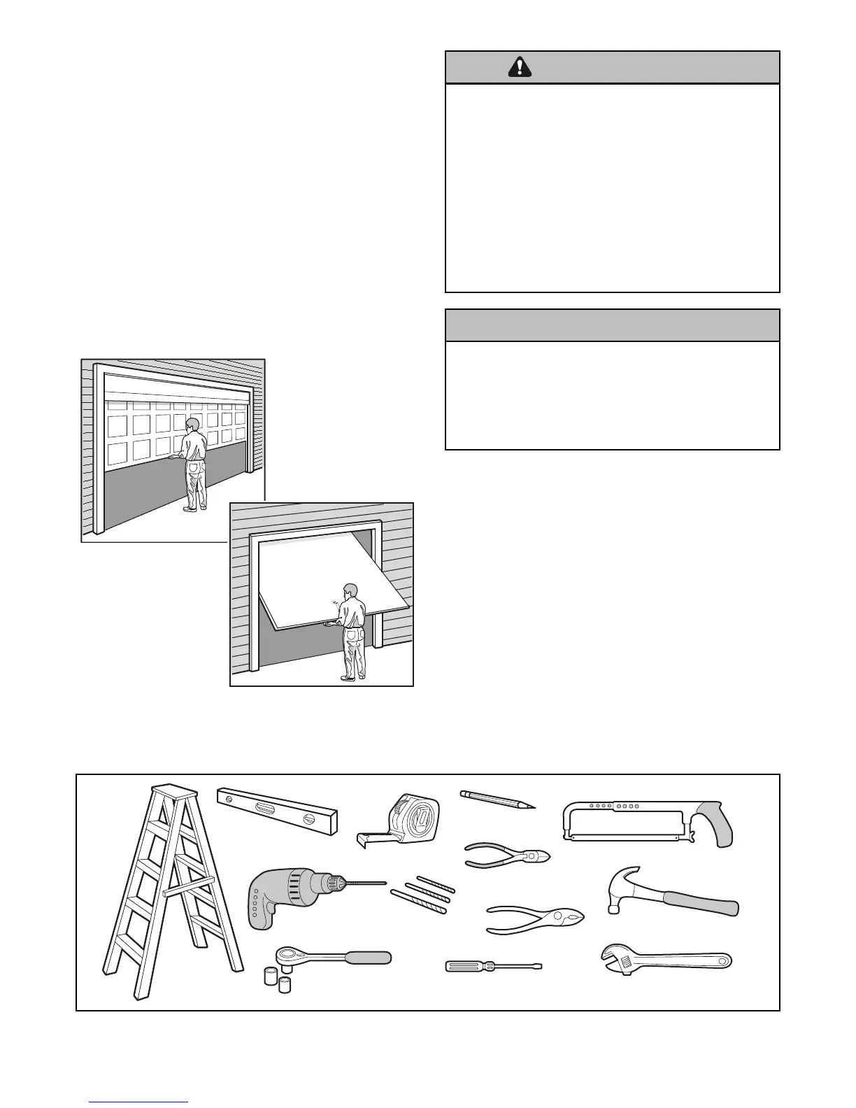 • NUNCA trate de aflojar, mover, ni ajustar la puerta del garaje,