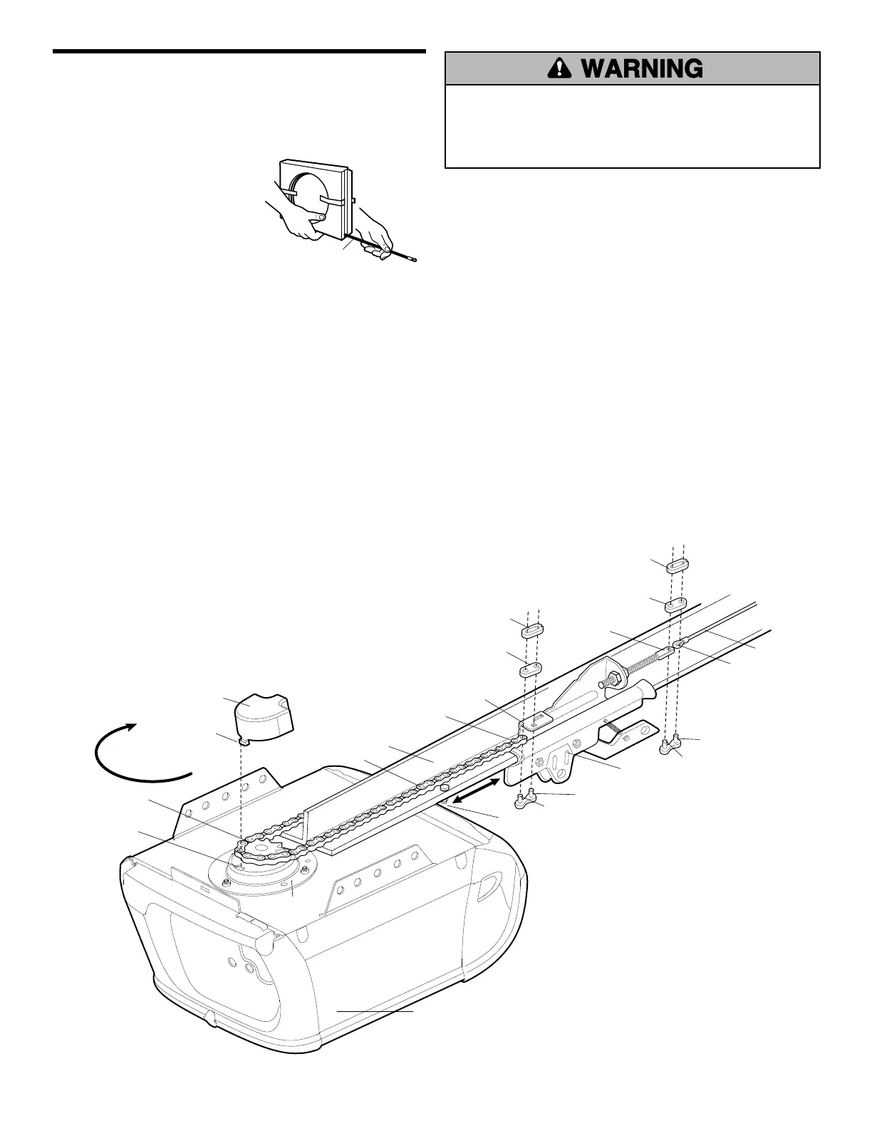 • ALWAYS keep hand clear of sprocket while operating opener.