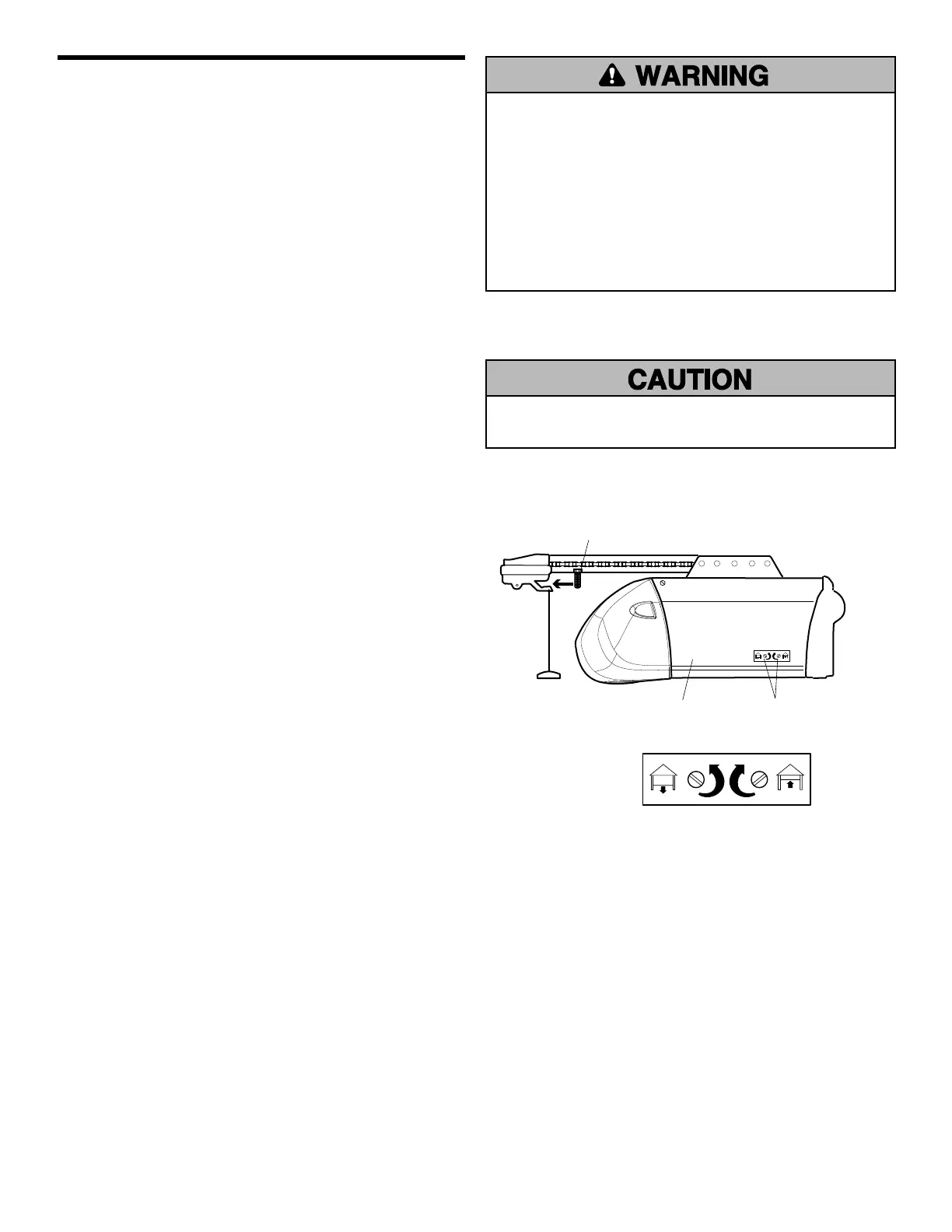 • Incorrect adjustment of garage door travel limits will interfere