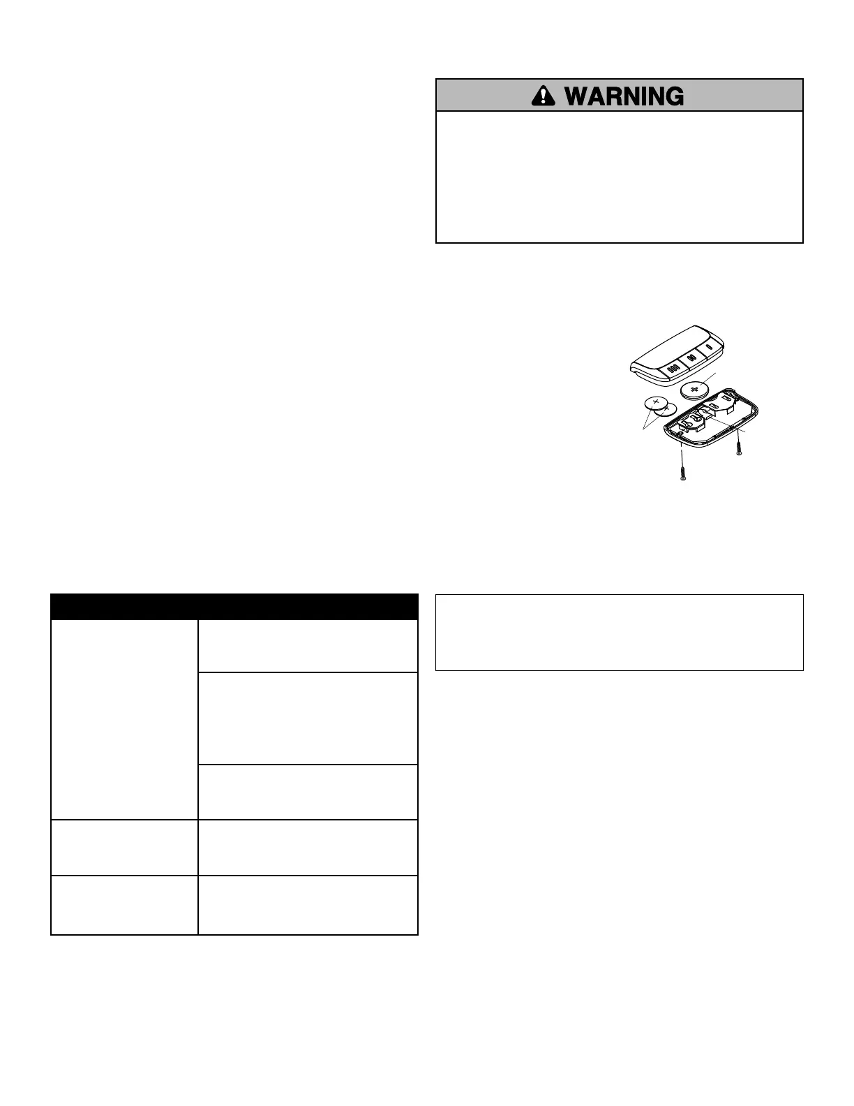 receiver and/or transmitter are prohibited, except for changing the code setting or replacing the
