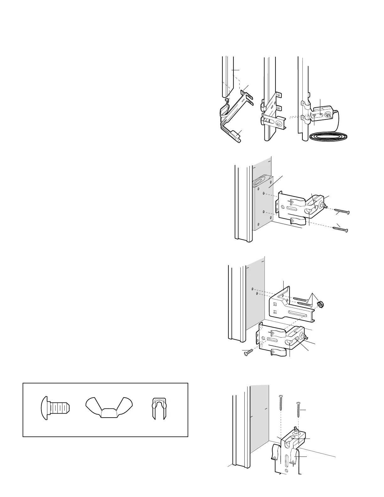 • Attach brackets to wall with lag screws (not provided).