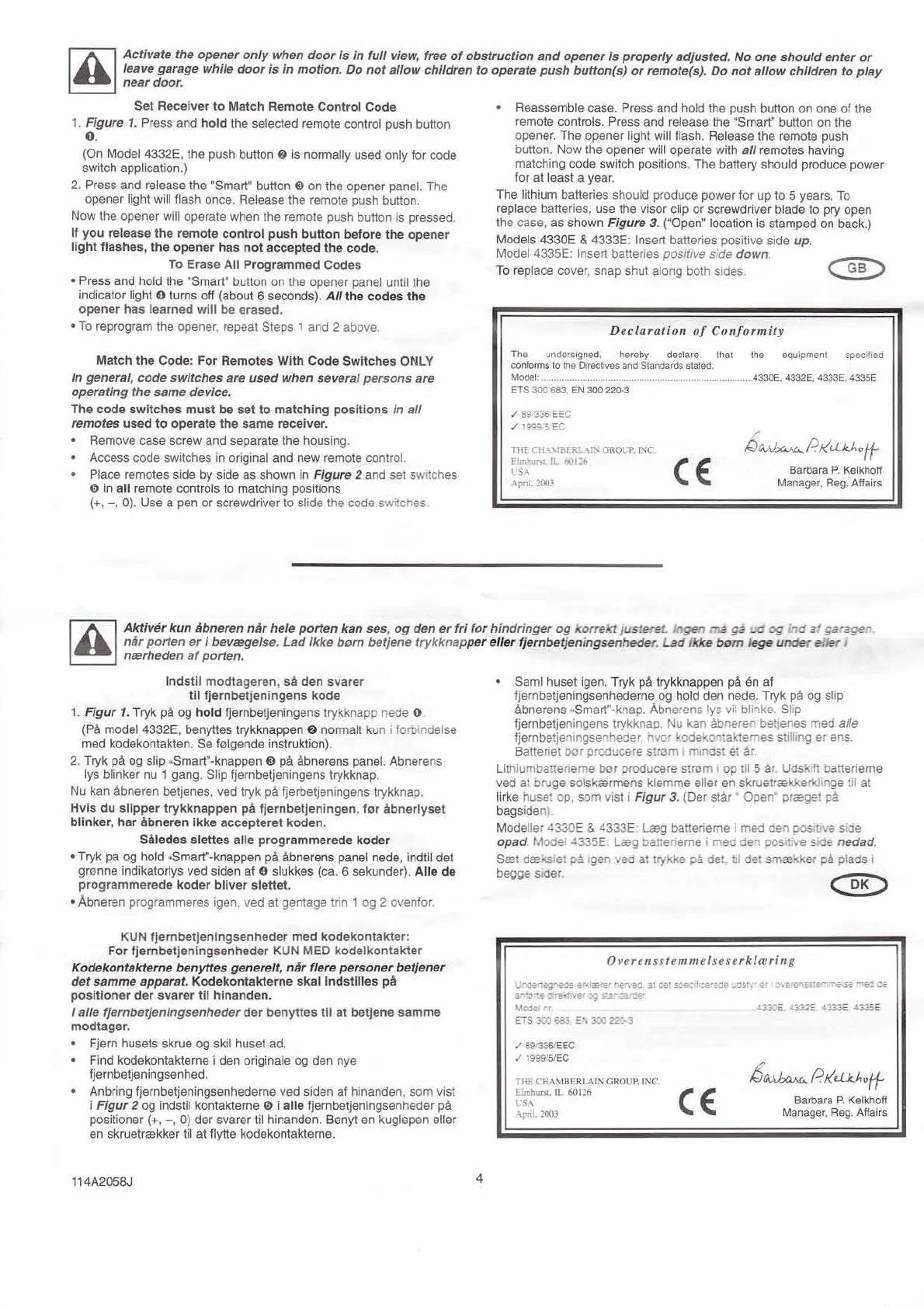 fjernbetjeningsenheder. hvor kodekontaktemes stilling