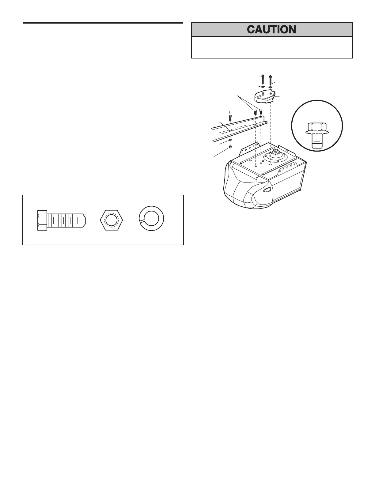 To avoid SERIOUS damage to opener, ONLY use bolts/