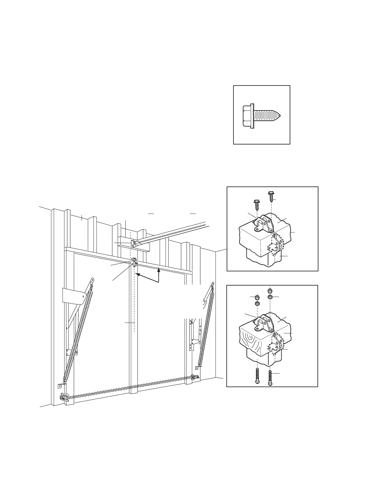 • Wood Doors: Drill 5/16" holes and use 5/16"x2" carriage bolts,