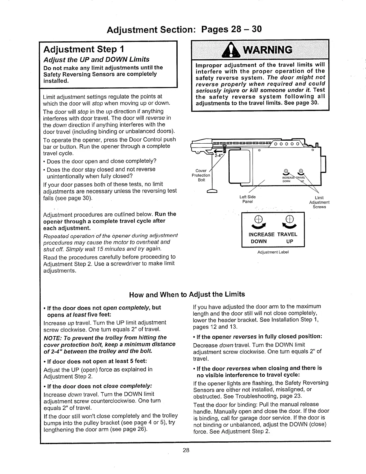 Chamberlain 710 WHC - Adjustment Section; Adjust UP and DOWN Limits