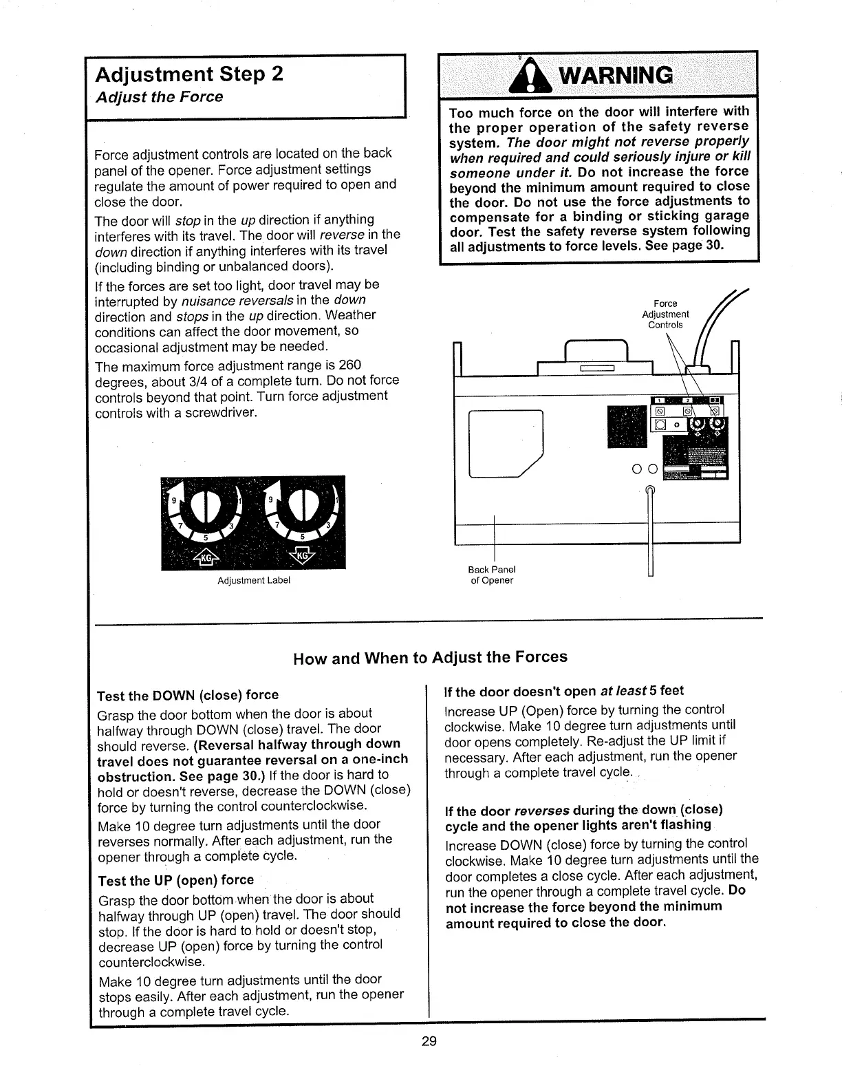 Chamberlain 710 WHC - Adjust the Force