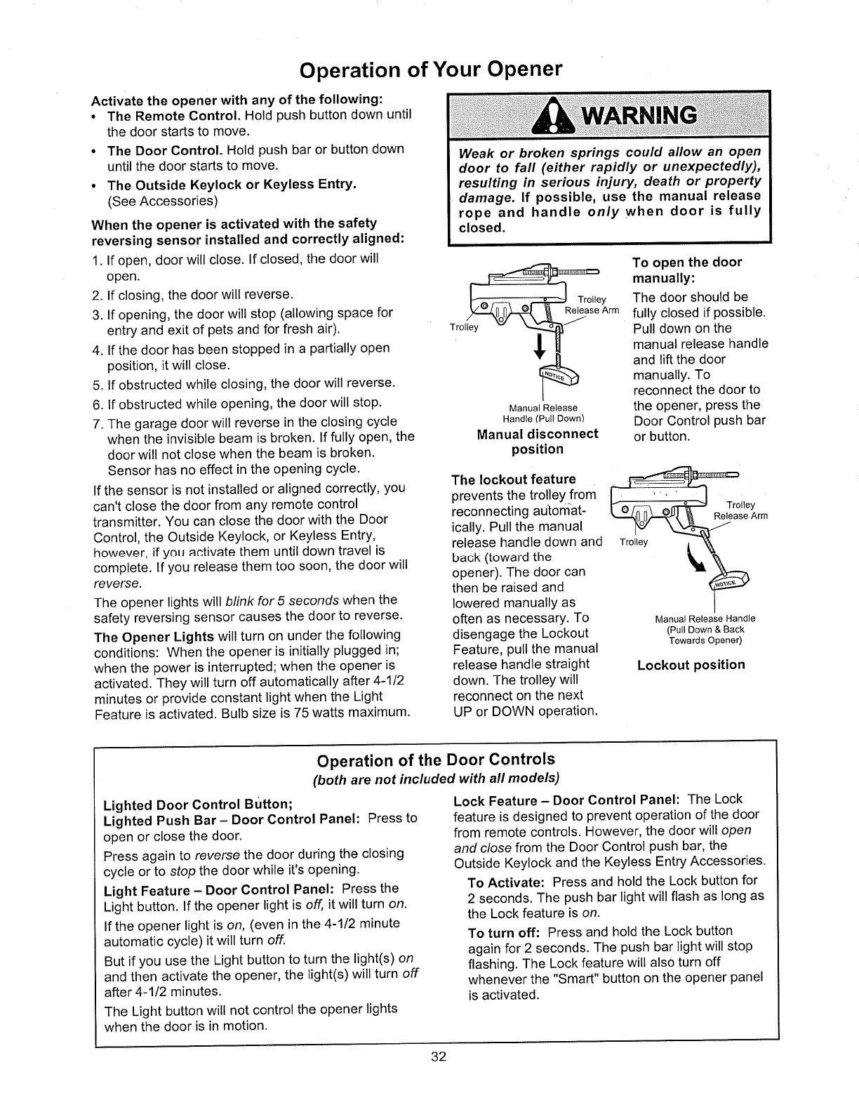Chamberlain 710 WHC - Operation of Your Opener; Activate Opener and Door Controls
