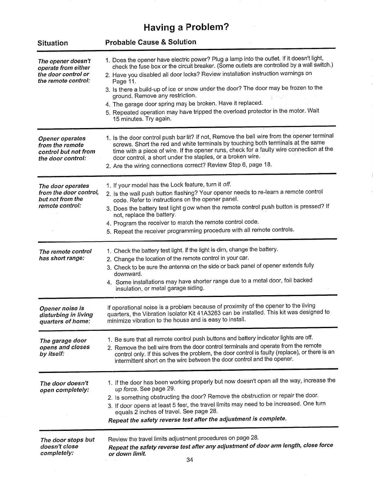 Chamberlain 710 WHC - Having a Problem?; Probable Cause & Solution
