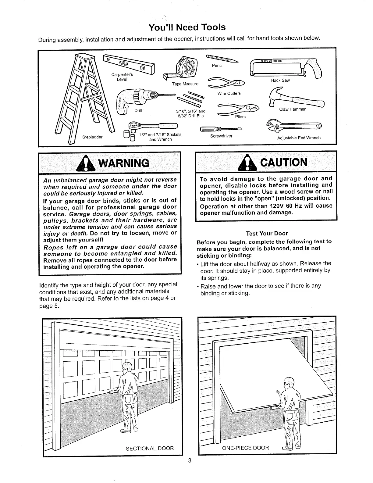 Chamberlain 7200 - Youll Need Tools; Test Your Door Balance