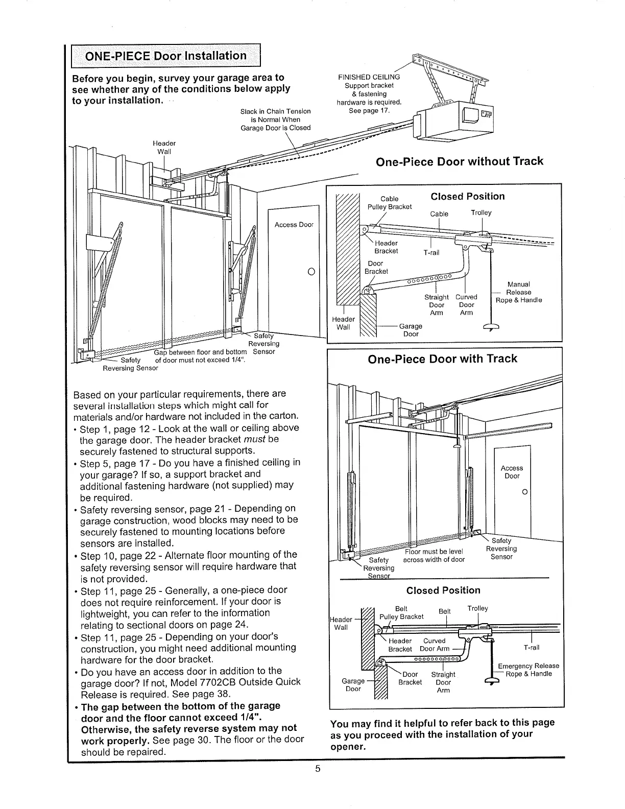 Chamberlain 7200 - ONE-PIECE Door Installation; Installation Pre-checks
