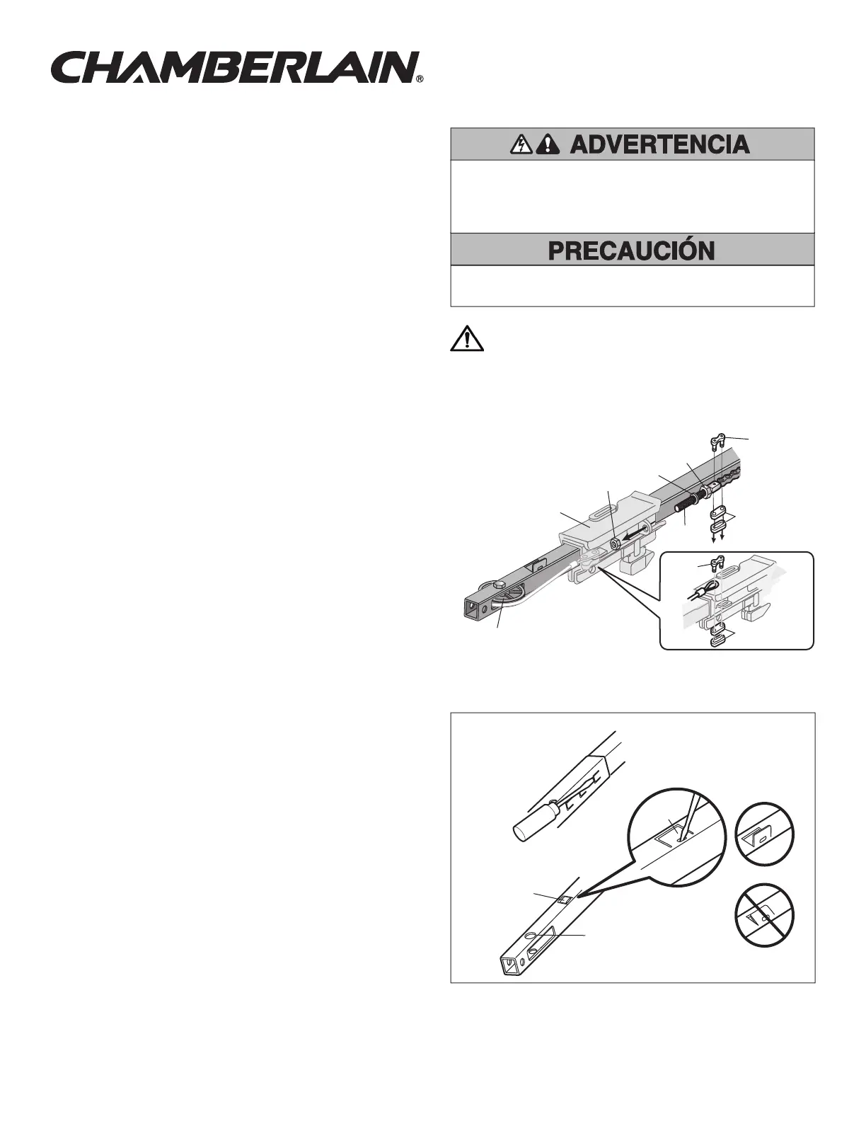 Utilice la sección delantera (cabecera) del riel, el conjunto de cadena y