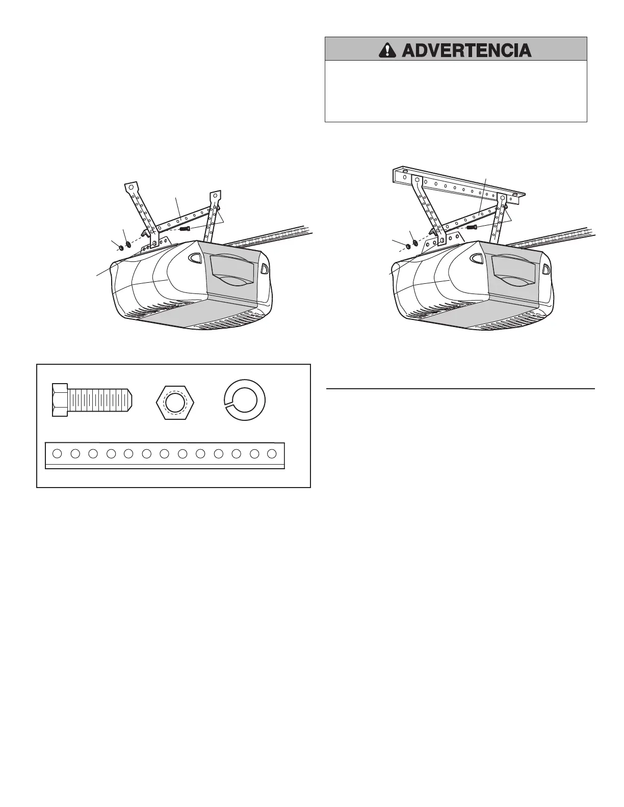 4), utilice pernos hexagonal de 5/16 de pulg.-18x7/8 de pulg., arandelas de